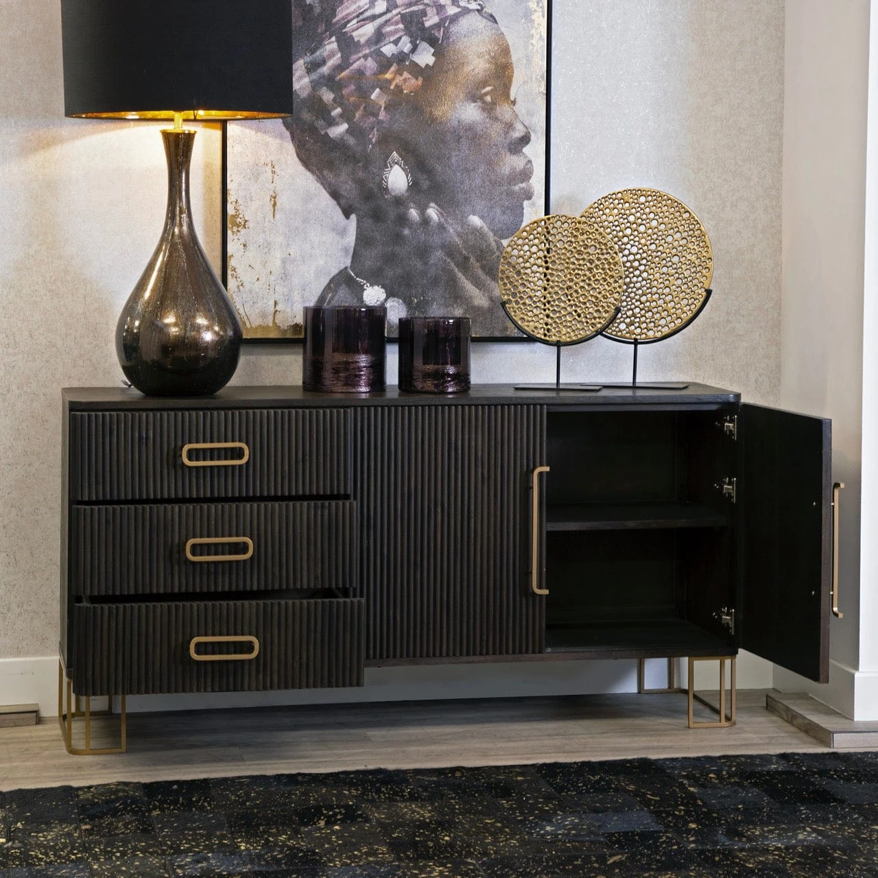Introducing the Bergamo Oak Extra Large Sideboard–the statement piece that will take your space from boring to bold! Not only is it extra large, but it also features a beautiful dark oak design with golden accents that will surely elevate the look of your home. Plus, this sideboard has 3 drawers so it keeps your items organized while looking fabulous.