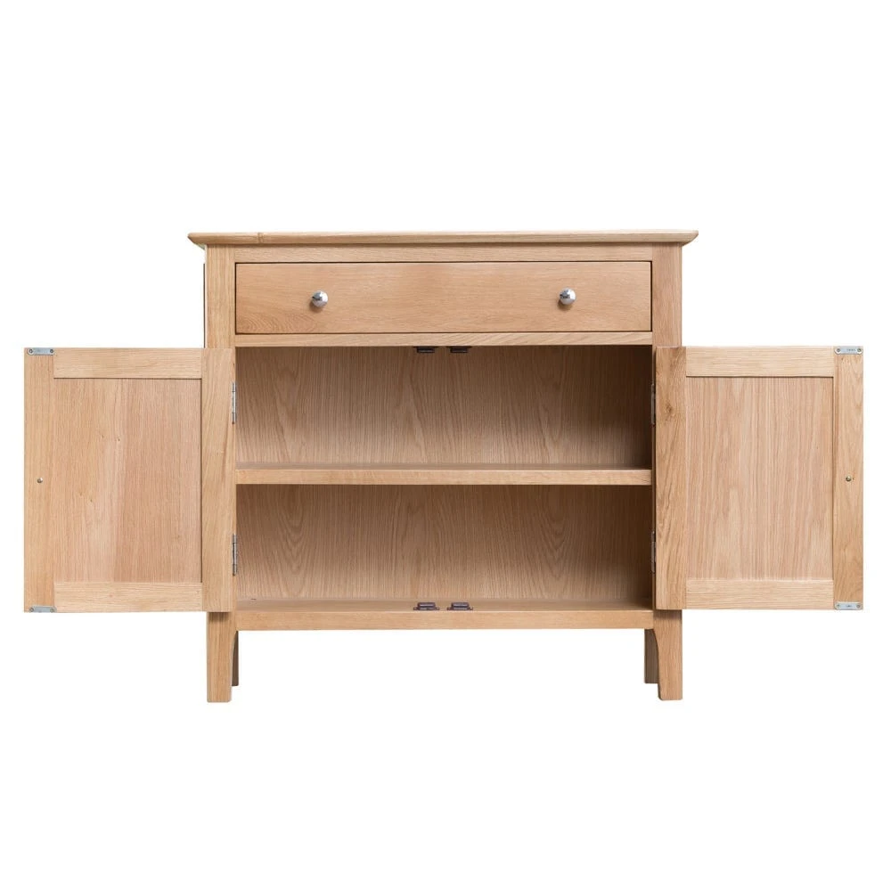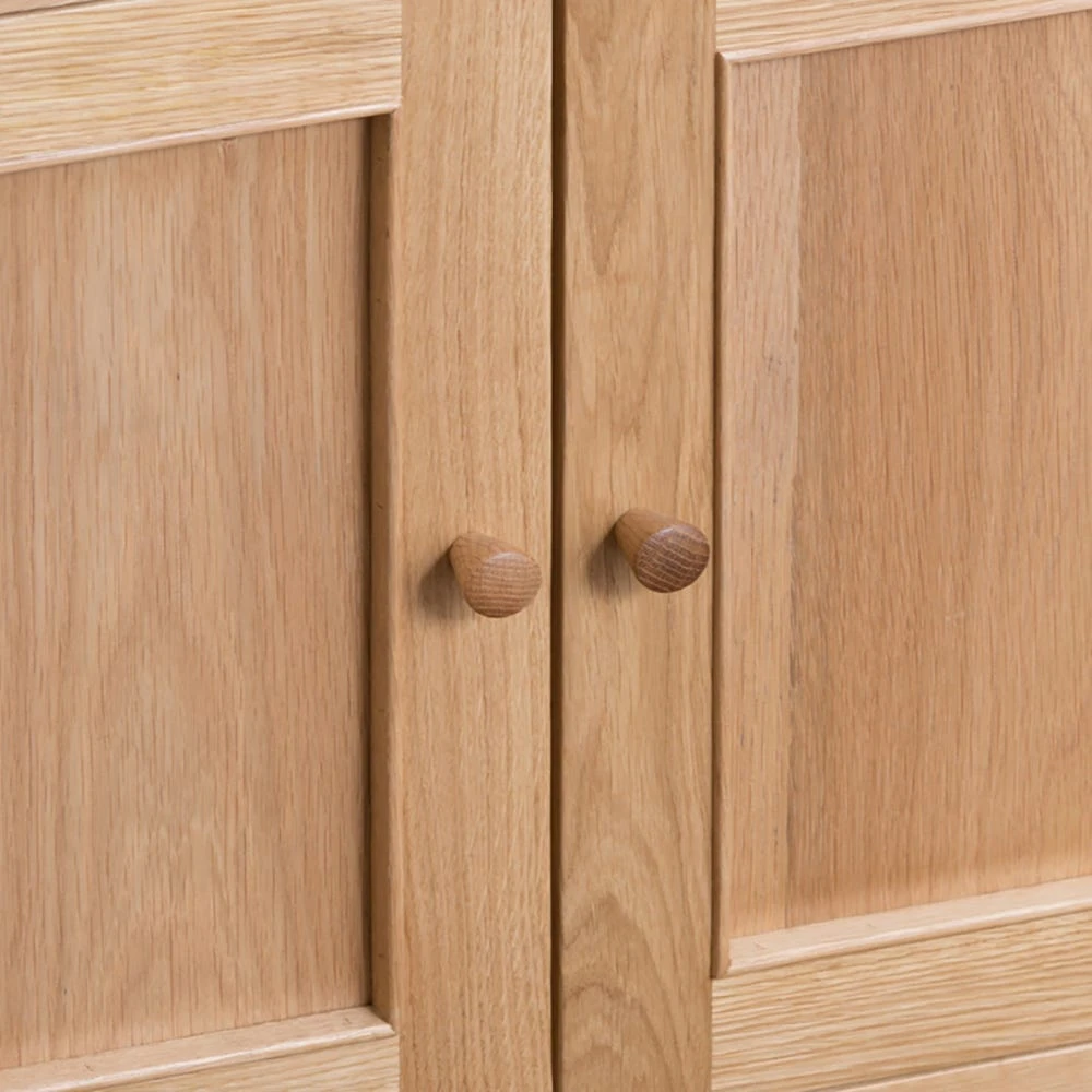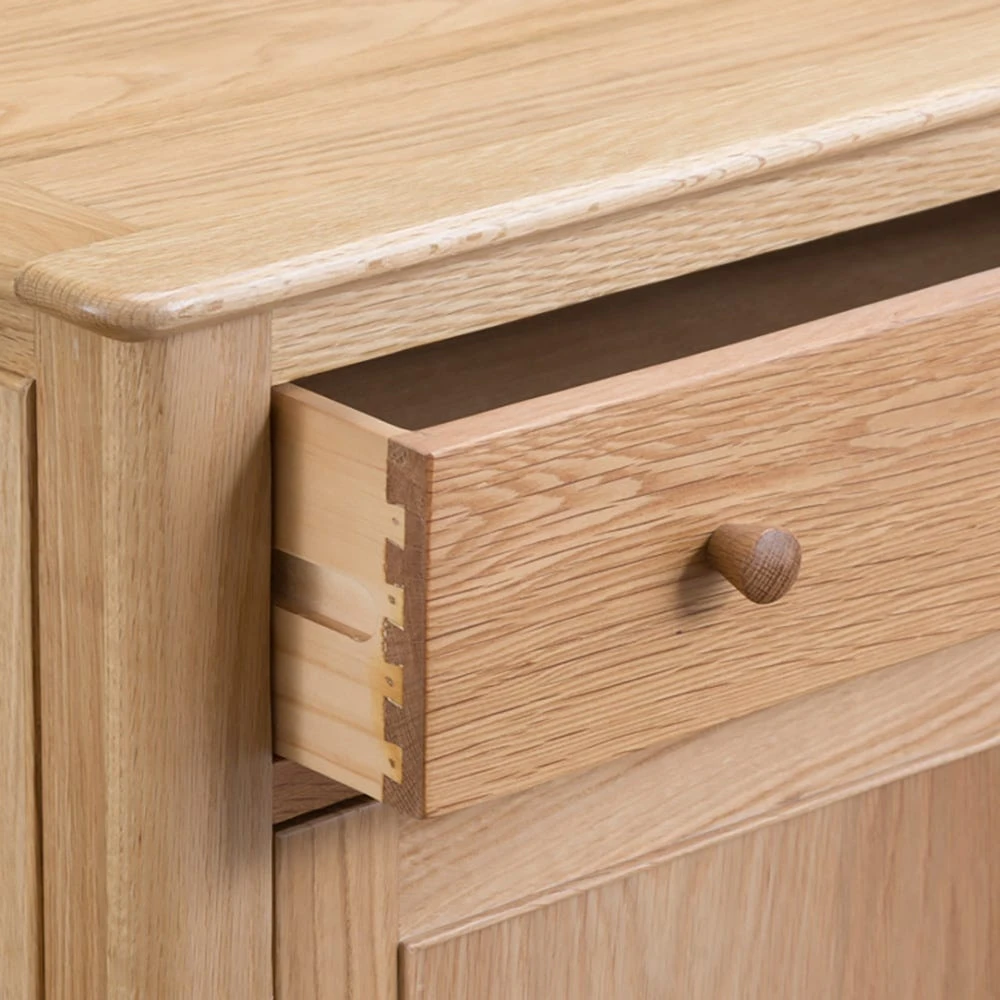 The natural oak finish of this elegant sideboard has timeless charm. Arrange the smooth wooden top surface with a floral display or sweet-smelling scent diffuser to further add to the ambience of the room.
