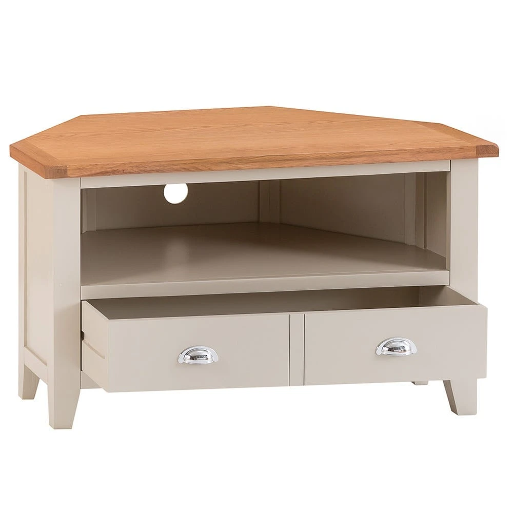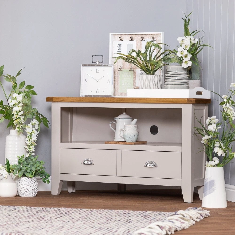 Create a natural focal point for your TV by placing it on the Chester stone painted oak corner TV unit. Stick your favourite TV series on and cosy up for a relaxing night in switching off from the outside world.