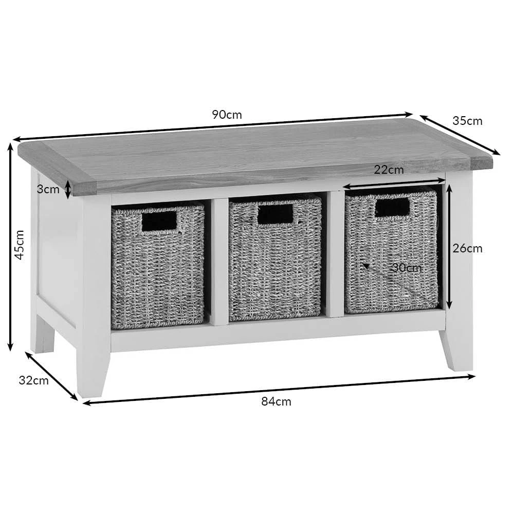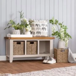 Subtle and practical – the possibilities are endless with this incredibly versatile piece of furniture. The Chester stone painted oak hall bench with wicker baskets offers storage solutions, and adds decoration to whichever room you place it in.