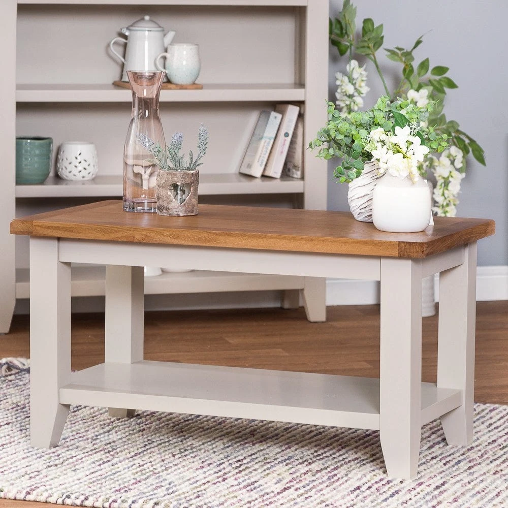 Who said coffee tables have to take up all the space in your living room? Create a lovely centrepiece that doesn’t take over with the Chester stone painted oak small coffee table.