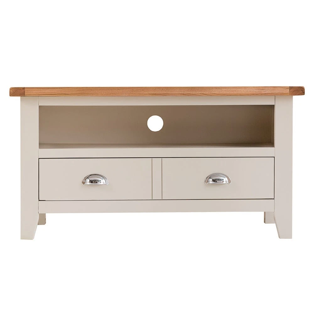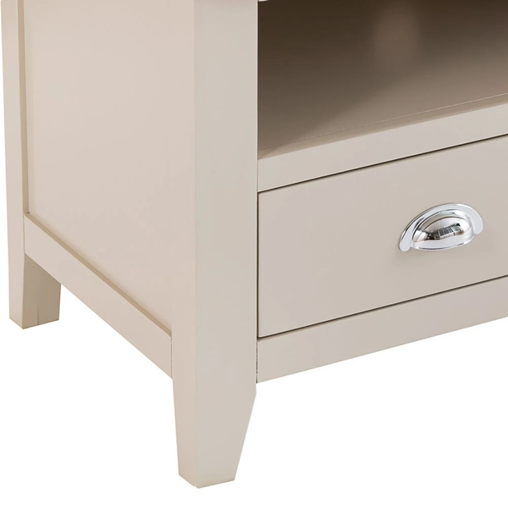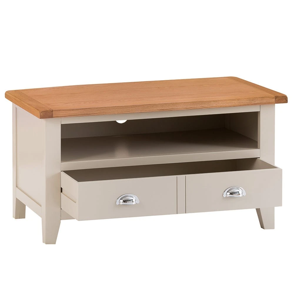 Whether you’re snuggling up for a cosy evening watching your favourite series or inviting friend’s round for a popcorn-filled film night, do it in style with the Chester stone painted oak small TV unit.