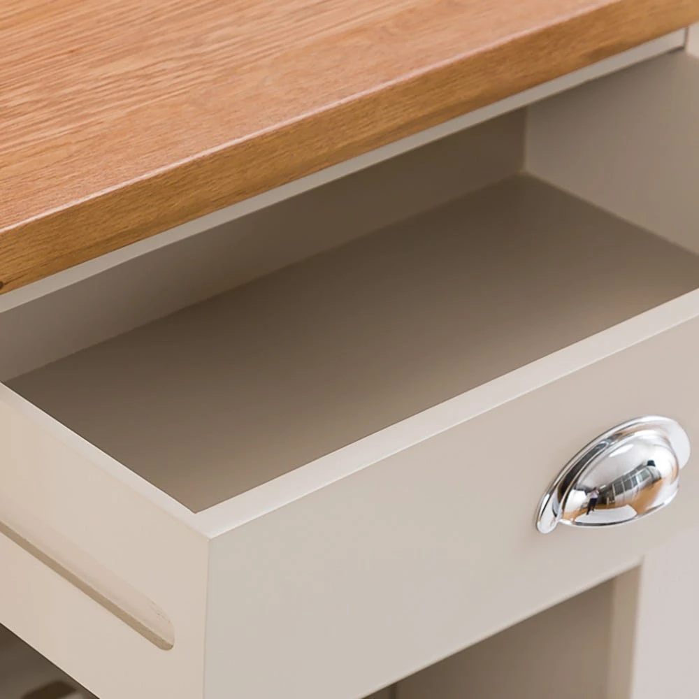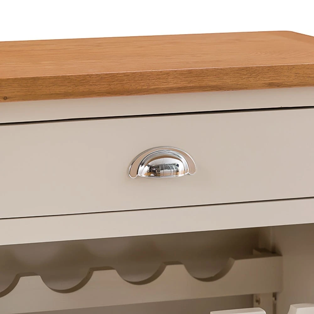 Line the purpose-built shelves with a few bottles of your favourite tipples, and store corkscrews and bottle openers in the handy dovetailed drawer. Finished in an eye-catching yet subtle grey, this wine cabinet adds softness to your decor.