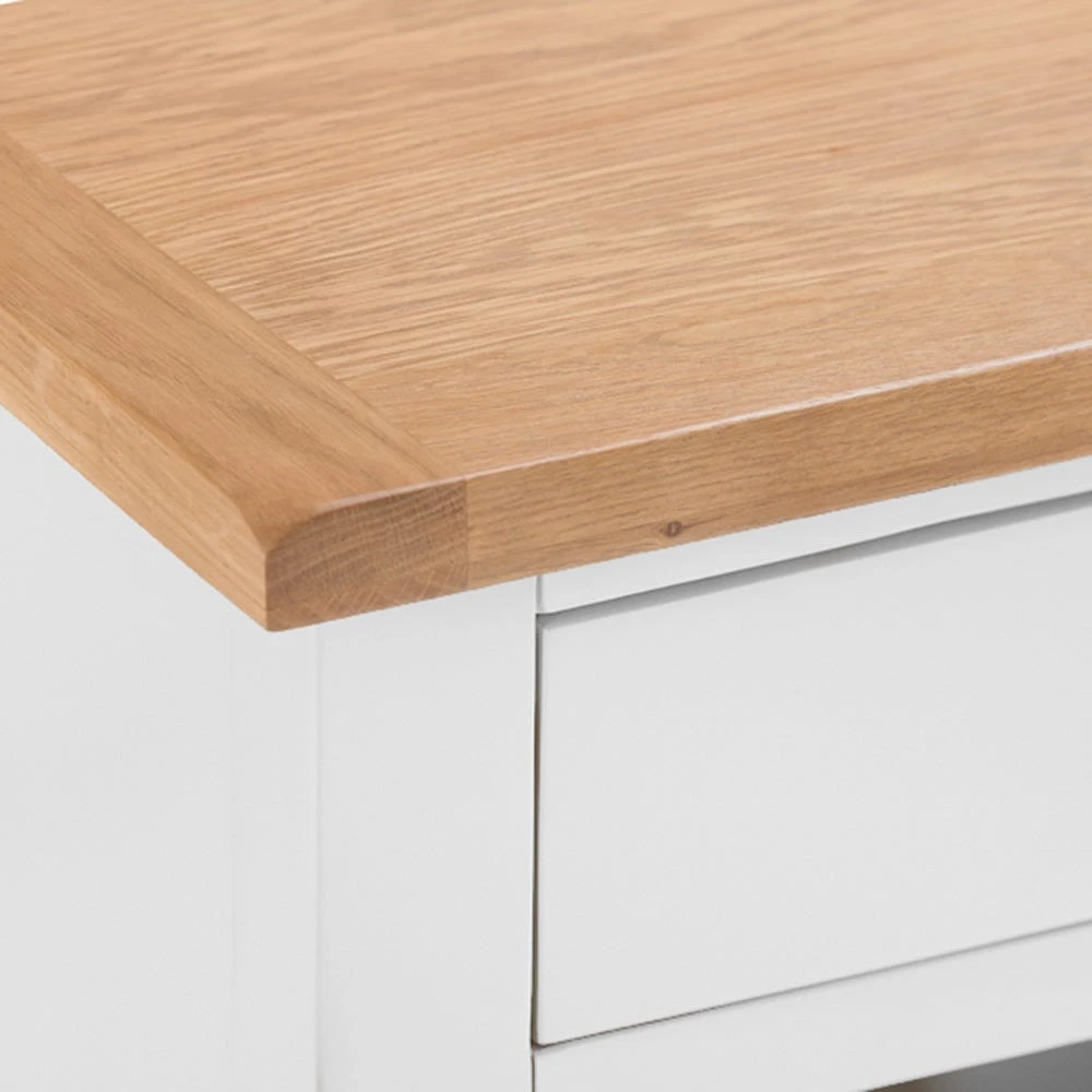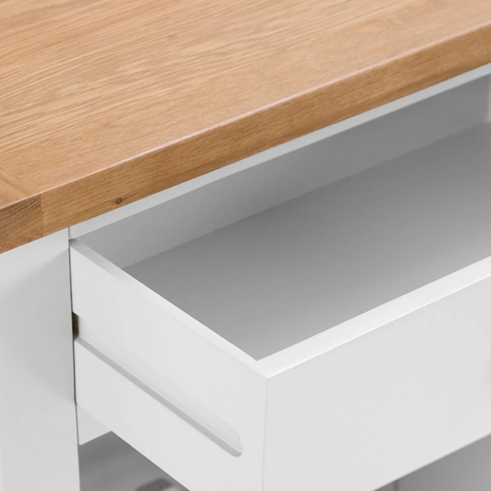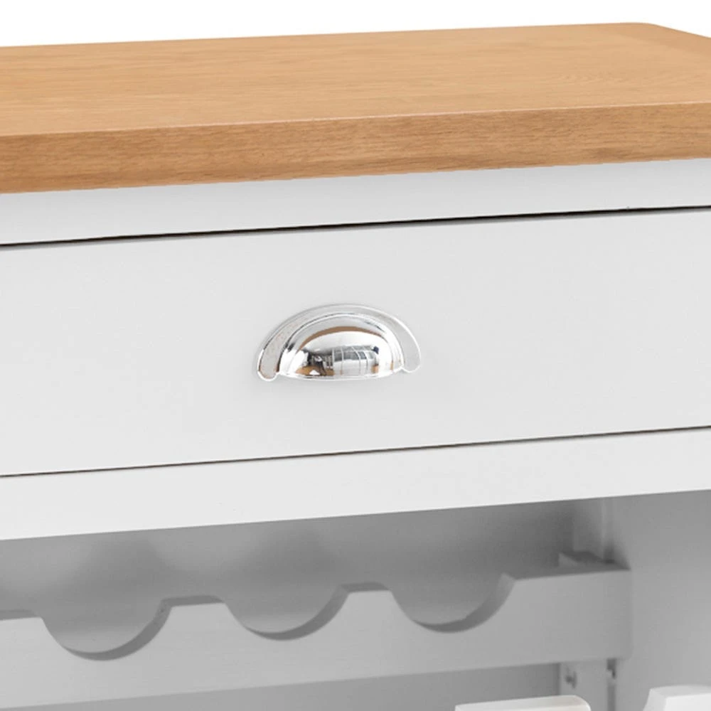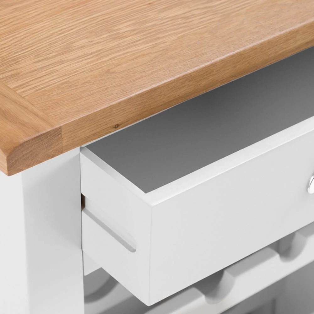 It’s a cabinet for all interiors, with its blend of modern features like the chrome handles accentuated by the solid farmhouse frame. Able to hold 16 wine bottles, there’s a space for all your finest reds, whites and everything in between on this luxurious white painted wine cabinet. The expertly dovetailed drawer is a handy cubby for corkscrews and wine stoppers. Stack the sleek oak top surface with jugs and glasses to keep everyone topped up the whole night through.