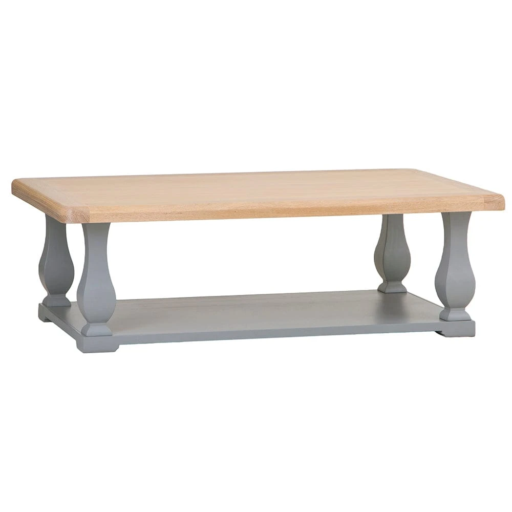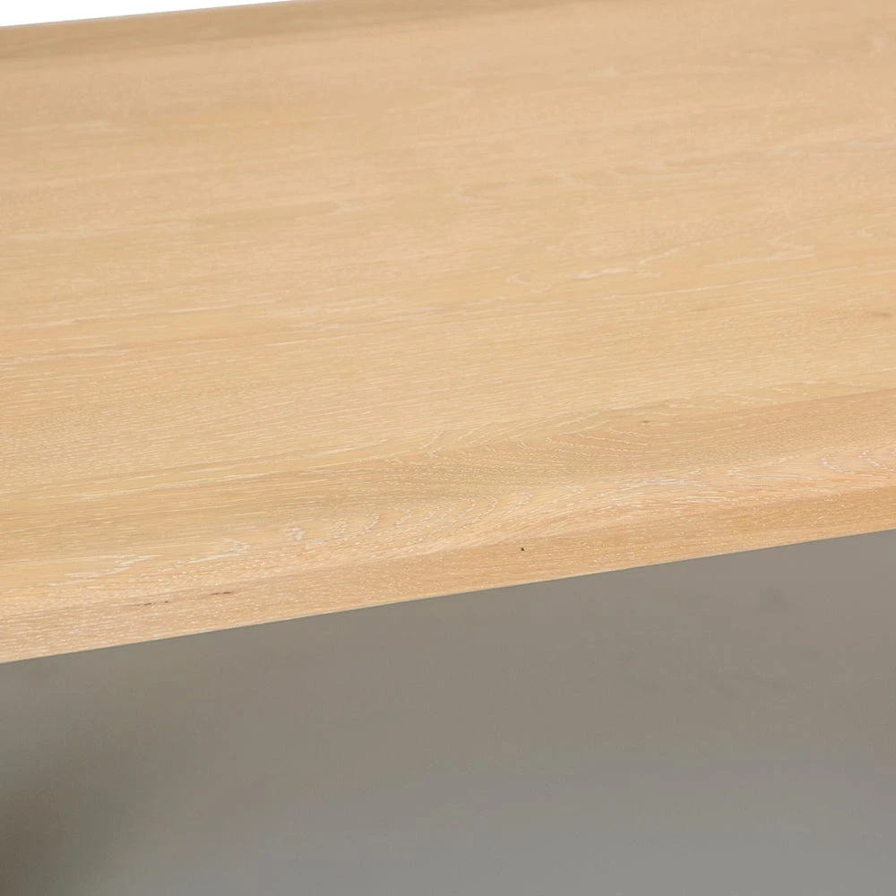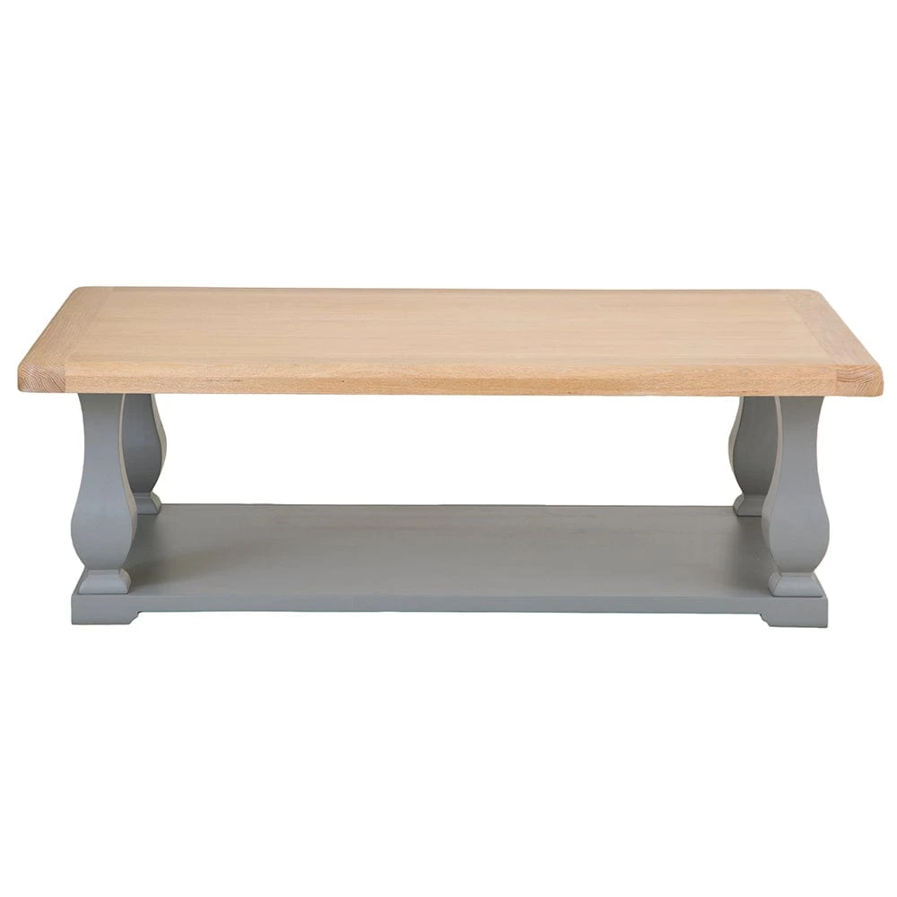 Bring the essence of the Jurassic coast to your living room with this impressive and imposing coffee table. With a whitewashed chunky oak top and a soft grey colouring evoking dramatic imagery of stormy seas lapping at chalk cliffs, bring an air of the awe-inspiring to your afternoon coffee. Able to fit in with most decorative styles due to its gentle pallet it’s a stunning grey coffee table that’s a welcome addition to any room.