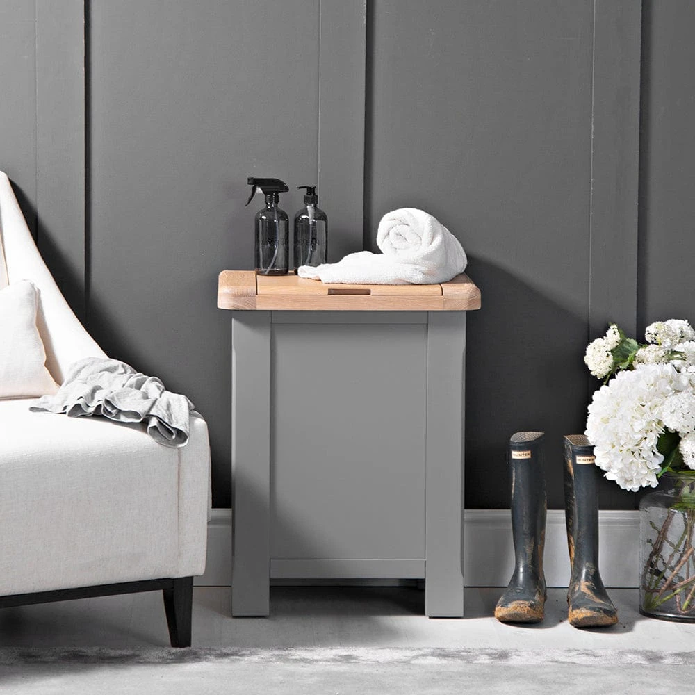 Style is perhaps the last thing we think about when considering a washing basket but with the Dorset Storm Grey Oak Laundry Basket you can get a practical piece of furniture that looks great and keeps clothes out of the way until ready for the laundry. The soft grey painted finish and rounded washed oak tops make for an unobtrusive and sophisticated aesthetic that will level up your laundry room with a hinged lid that stops odours from escaping and a sturdy and robust construction that makes it versatile enough to sit in the bathroom, bedroom or anywhere else in the house without looking out of place.