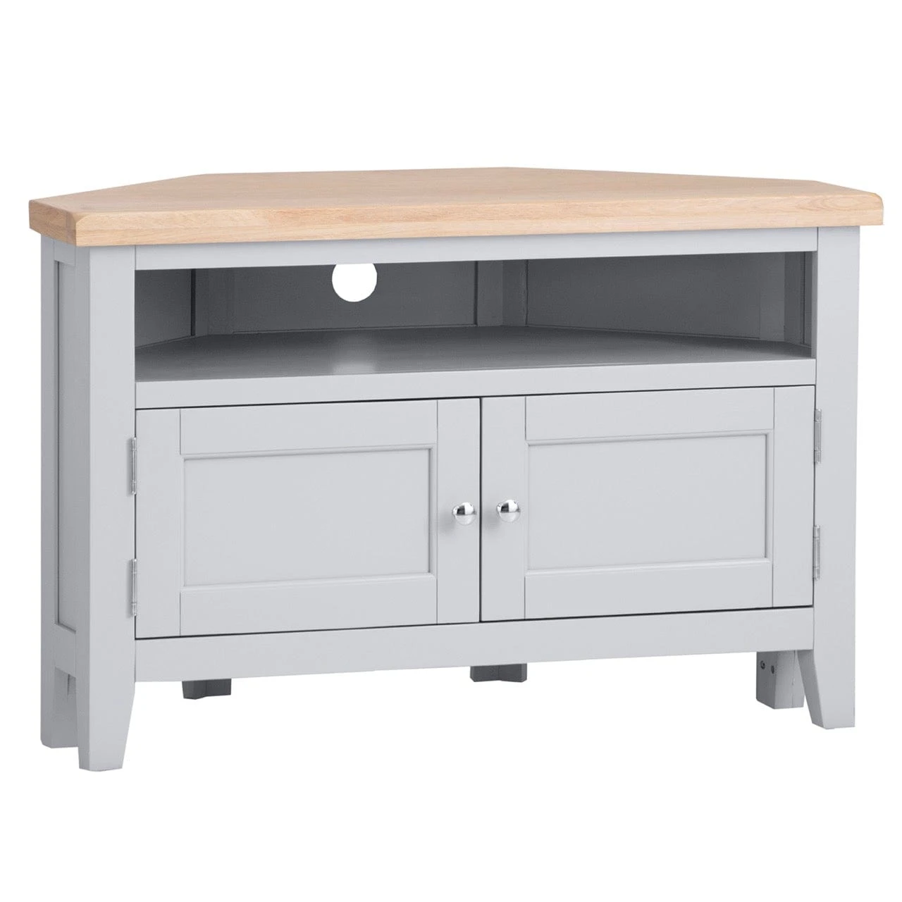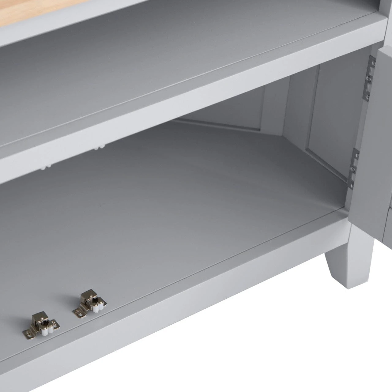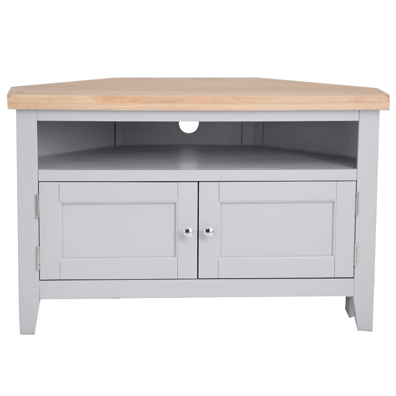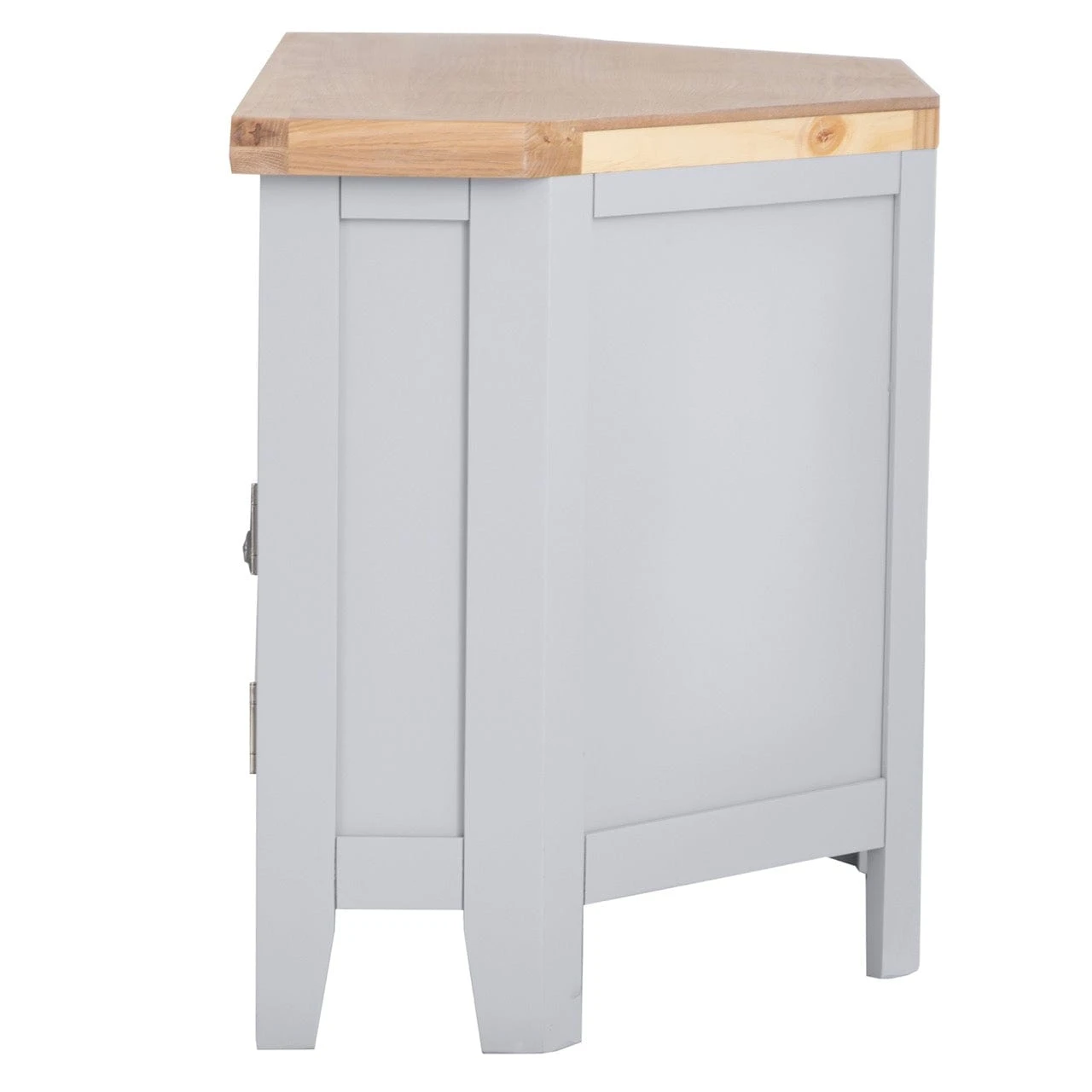 Designed to complement any entertainment space, the Eaton Grey Painted Oak Corner TV Unit offers the perfect blend of storage and style. Made from oak, pine, and real oak veneer this corner TV stand’s construction makes for a sturdy build and natural longevity. The corner television unit optimises entertainment space with its innovative and seamless corner design making it the perfect fit for any home.