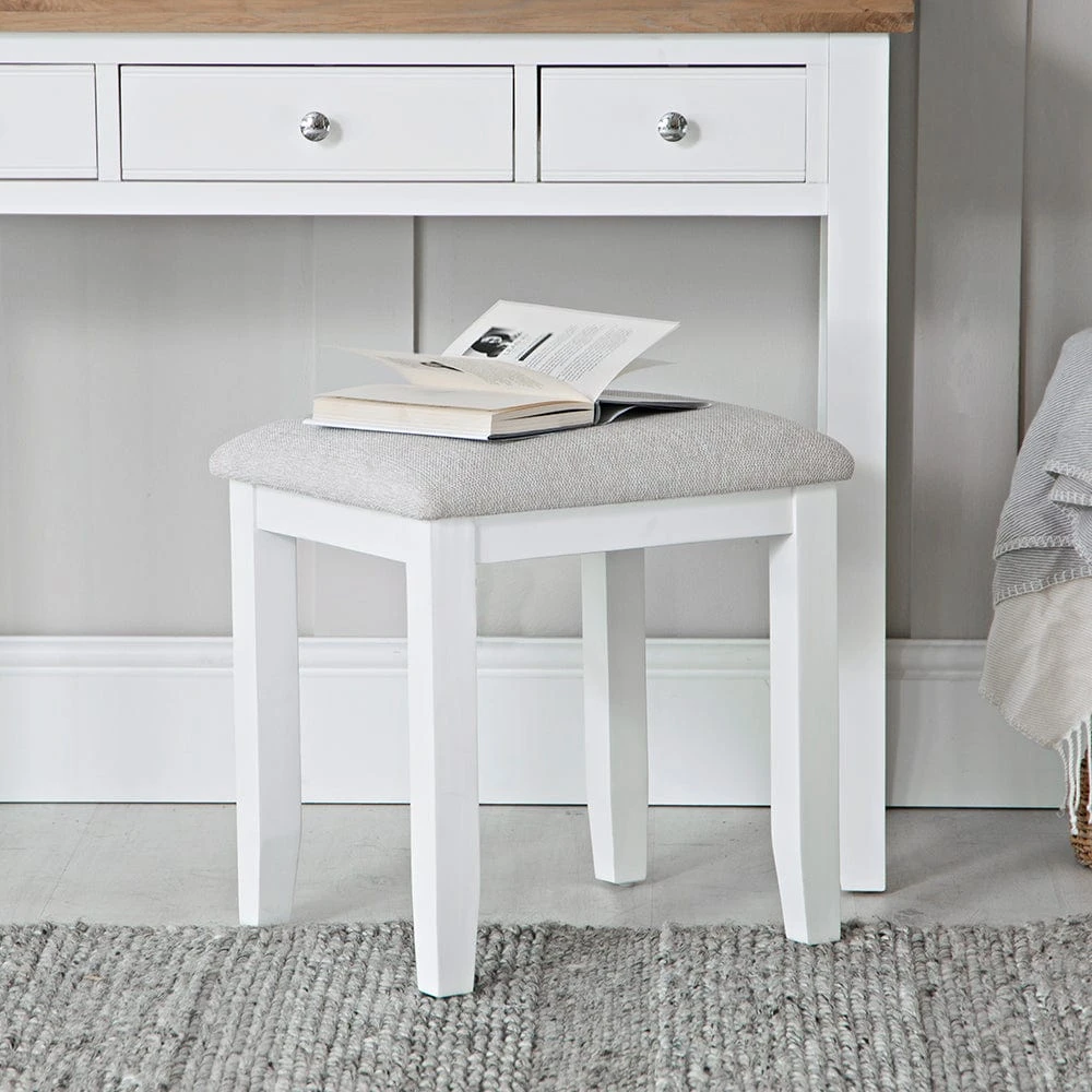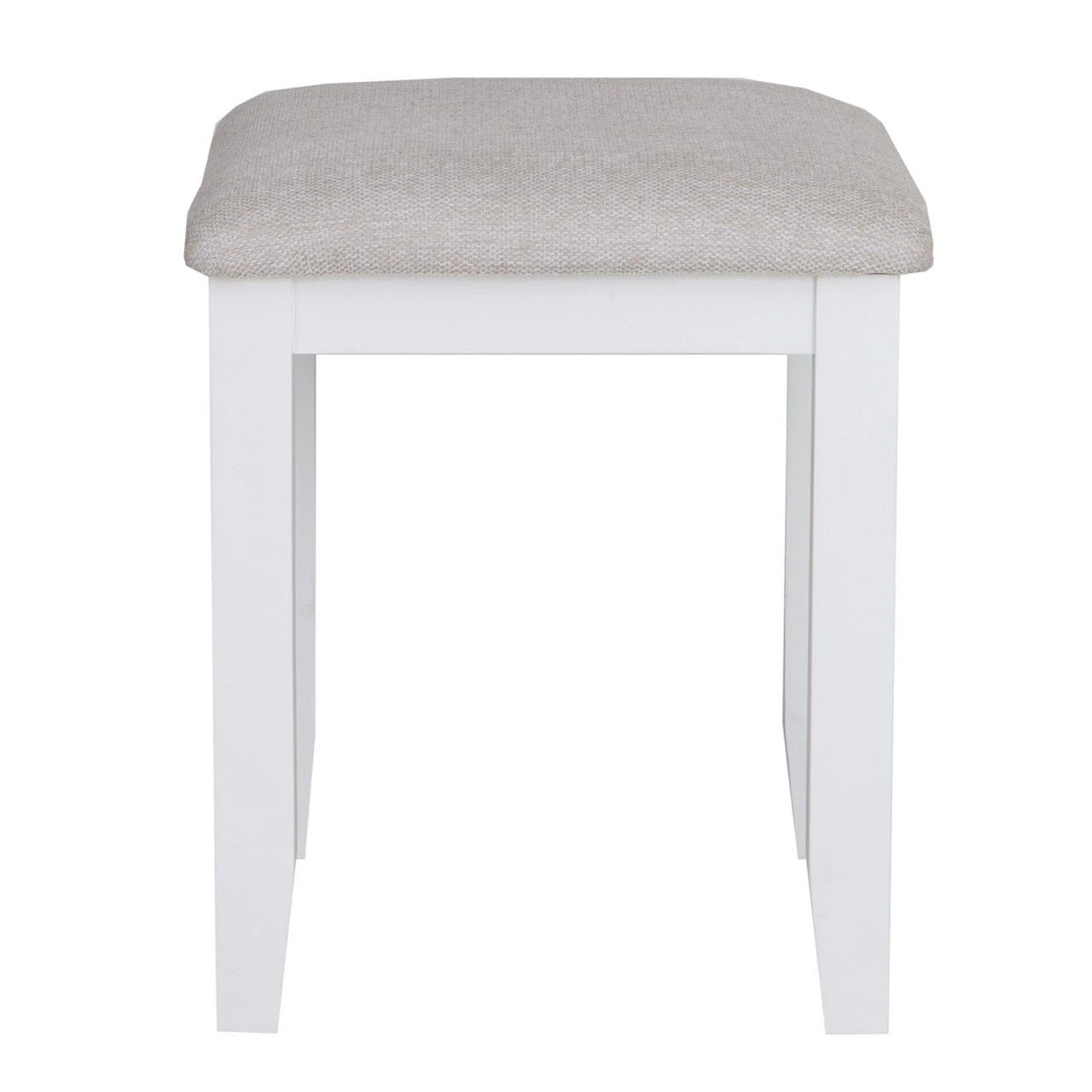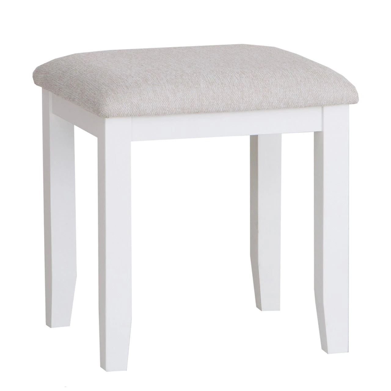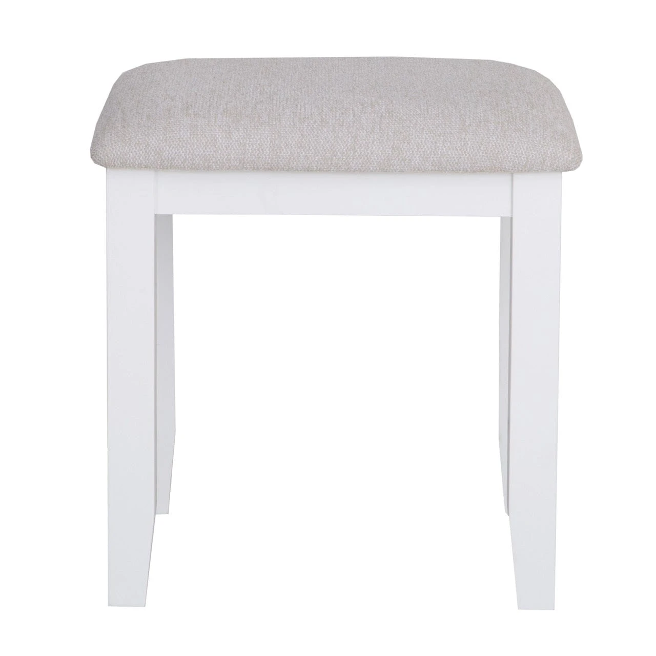 The Eaton White Painted Oak Dressing Stool is a stylish and practical addition to your dressing area. A white dressing table stool that gives a sense of clarity and comfort to your morning routine, the tapered legs and snow white frame give a crisp and clear aesthetic that offers a bright and breezy way to start your day.