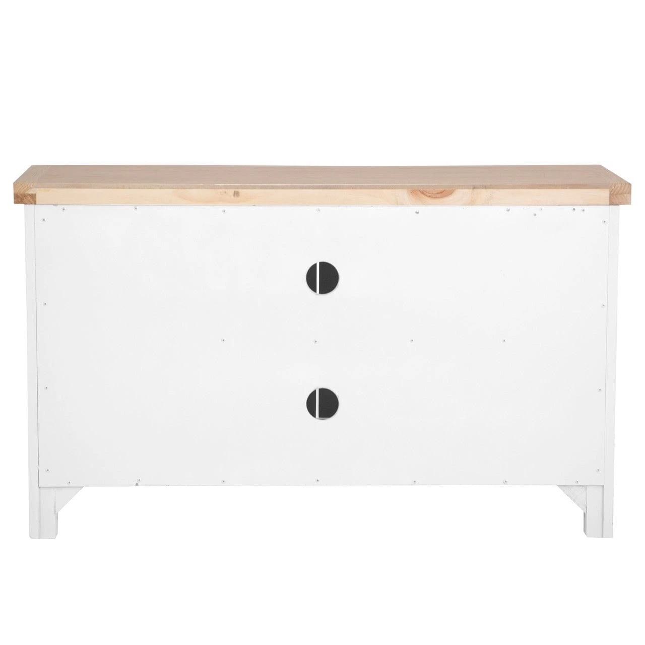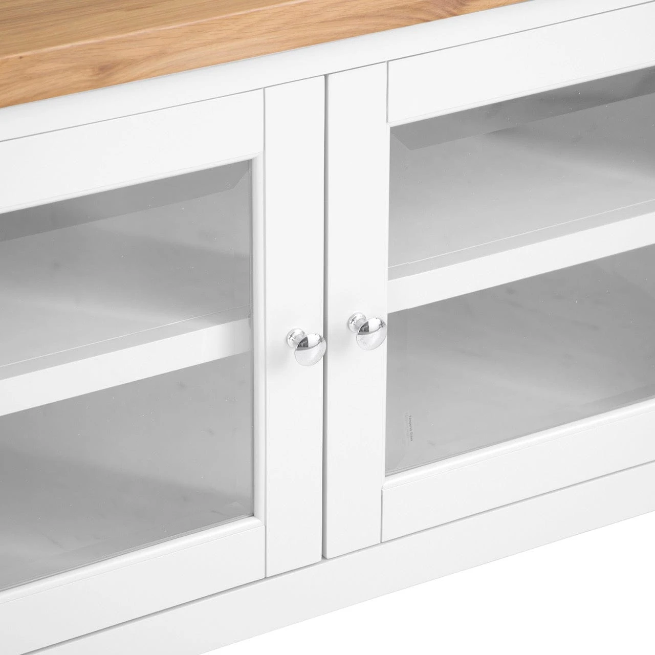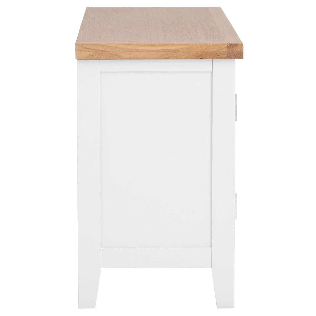 Compact in size, the Eaton White Painted Oak Small TV Unit is perfectly tailored for smaller spaces. A white TV unit with storage space, it provides a sleek and stylish platform for your television and media accessories. The crisp, white shade works with all decors and means you can accessorise and stylise your room to your unique tastes.