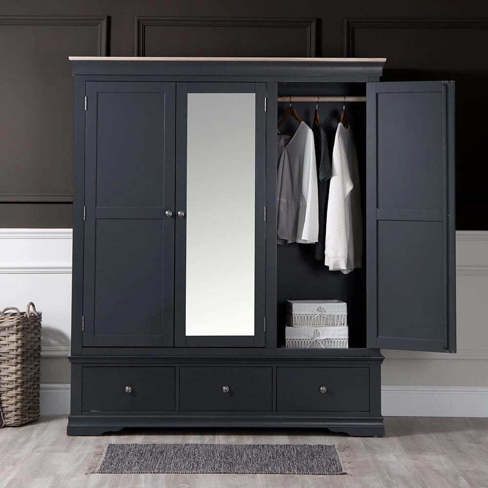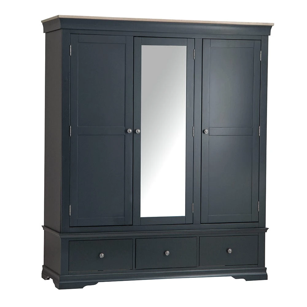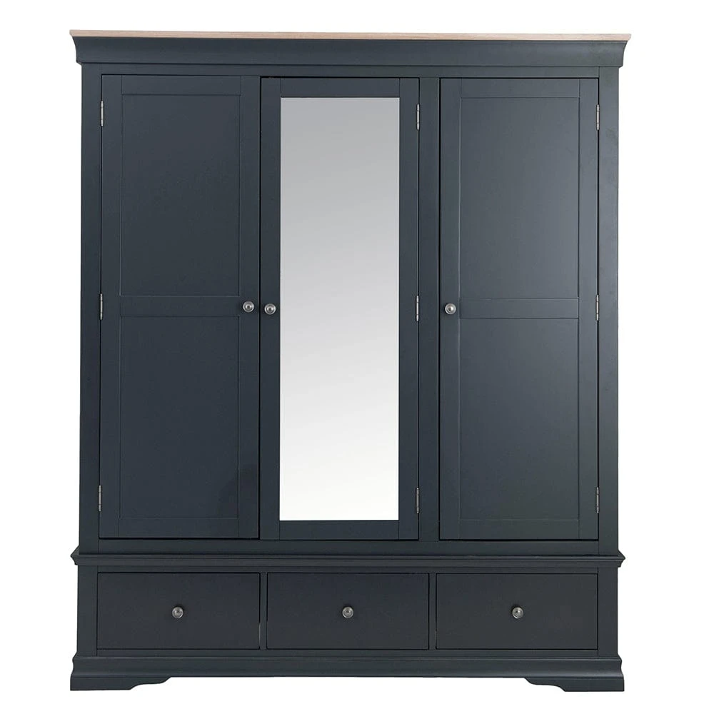 Be the first to review “Florence Midnight Grey Painted Oak 3 Door Wardrobe With Mirror” Cancel reply