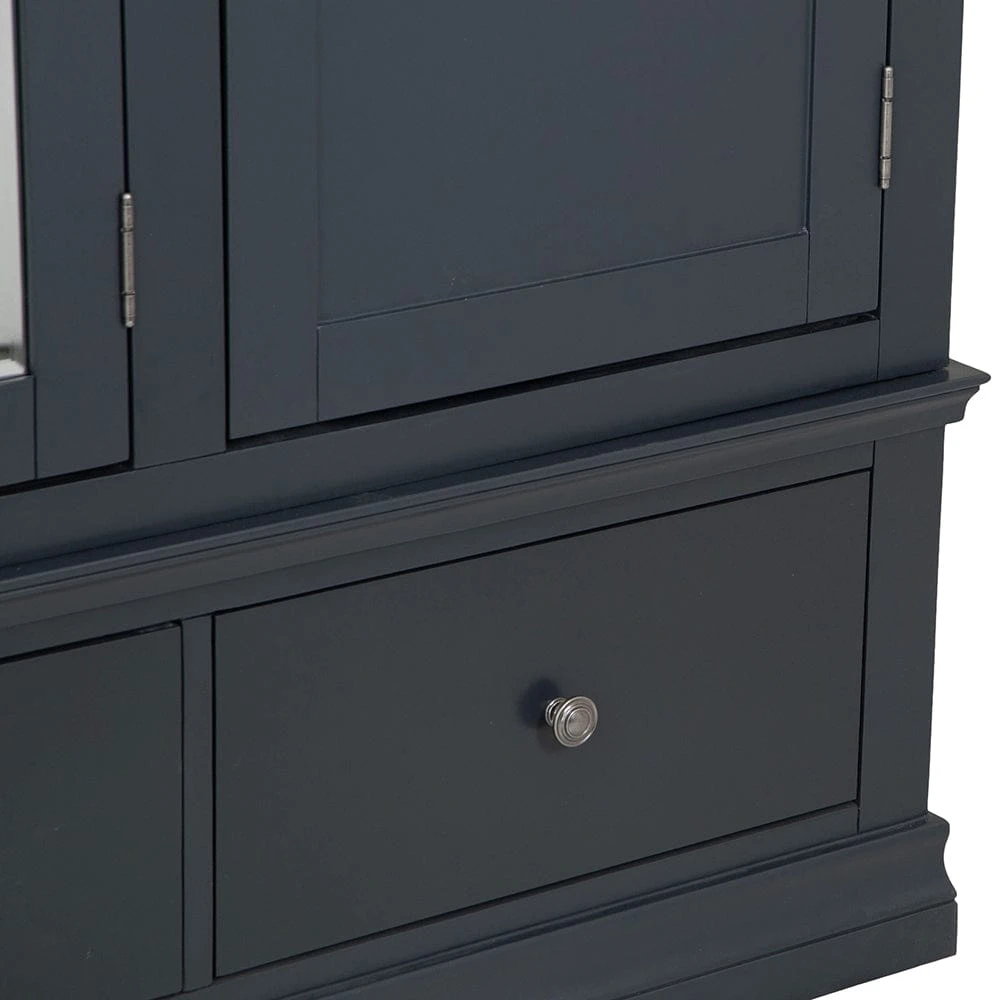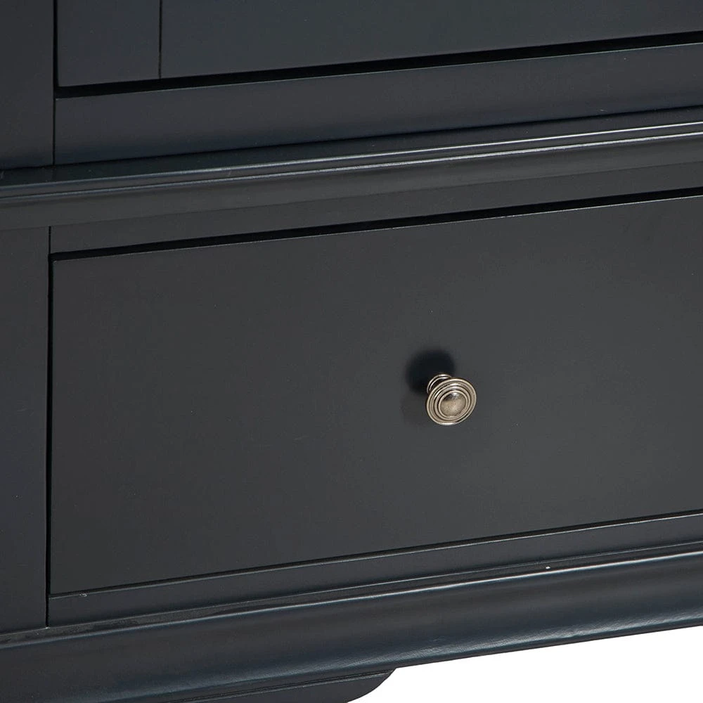Combining a contemporary colour with a classic design, the Florence Midnight Grey Painted Oak Collection is a fantastically versatile bedroom collection that appeals to those with a desire to adhere to the latest interior design trends. Clean straight lines, subtle detailing and stylish bracket feet – typical of Georgian and Edwardian period furniture – are complimented by rounded pewter-style handles. These handles are minimalistic by design in keeping with the overall smooth and deliberately unfussy look and feel to each furniture item. Thanks to its timeless and versatile design, the Florence Midnight Grey Painted Collection from Chiltern Oak lends itself to numerous interior styles, allowing you to create a calm and relaxing sleeping space regardless of the environment. This range is also available without the oak top, called Florence Midnight Grey.