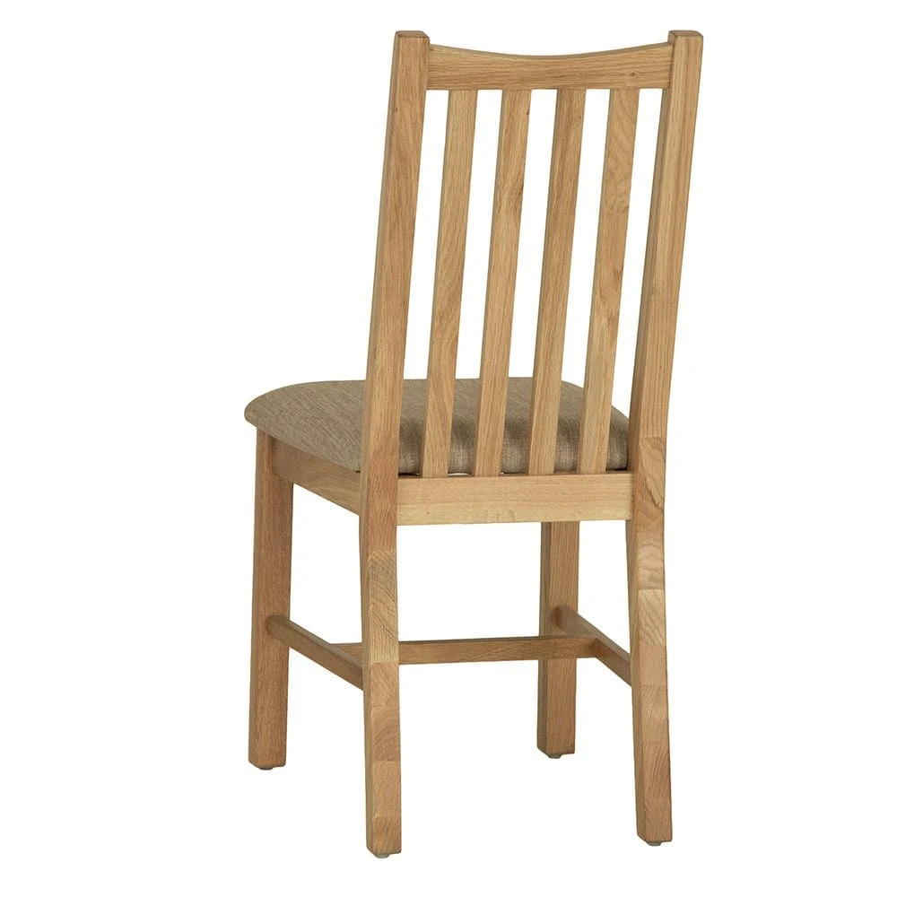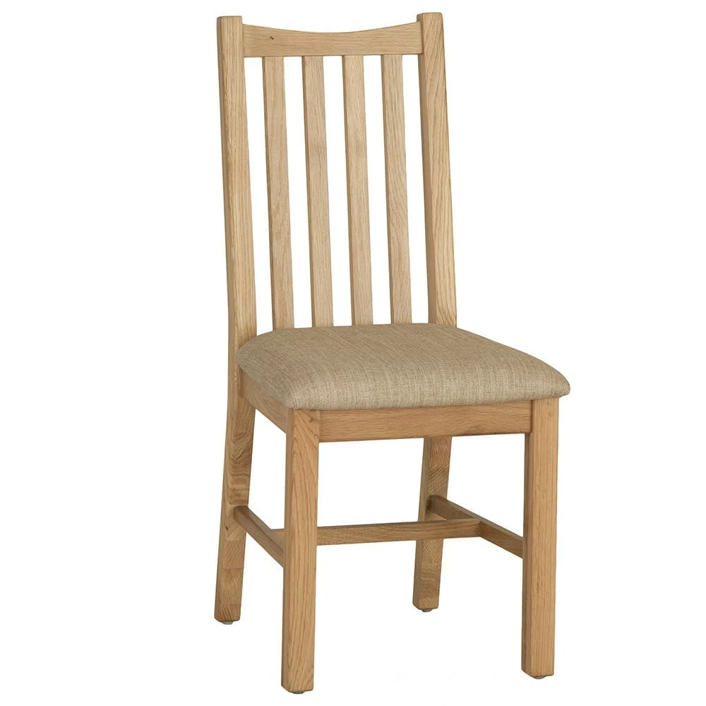 Make sure dinner lingers into the night when your guests are comfy on our Gloucester oak dining chairs with fabric seats.