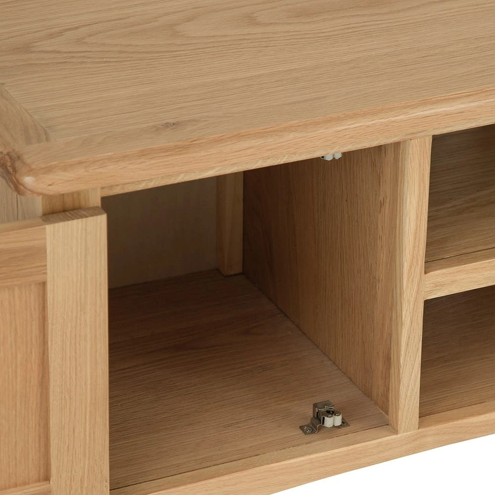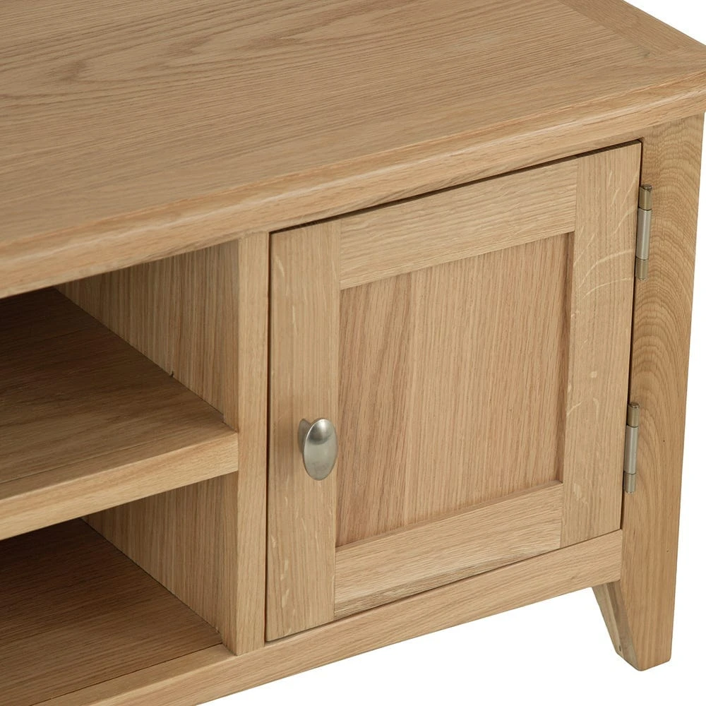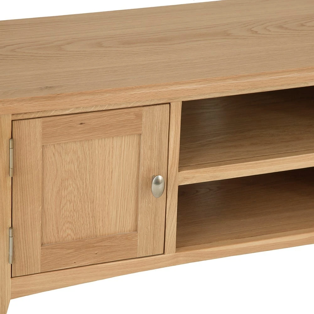 Curl up with a takeaway in front of your fave Saturday night programmes – with your telly atop our Gloucester oak large TV unit.