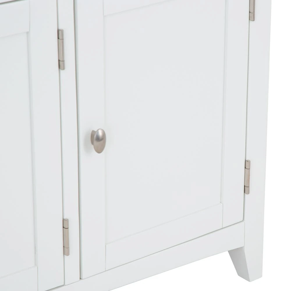 This impressive solid wood piece will take pride of place in your kitchen. Its white painted finish means it stands out against a brightly coloured theme or looks right at home among similarly neutral furniture.
