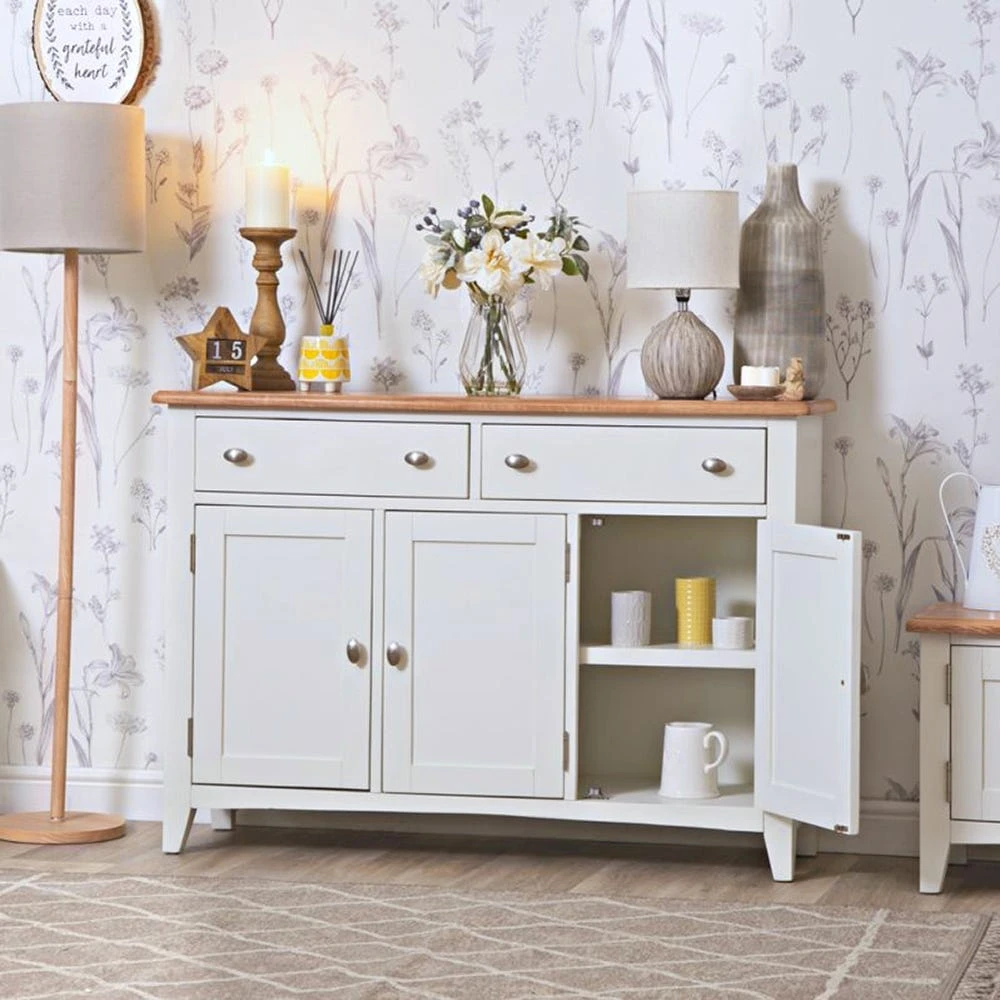 Dining sets, glassware and your best cutlery can all be at hand when it’s time to start setting the table for a Sunday meal – just store them in your new Gloucester white painted 3 door 2 drawer large sideboard.