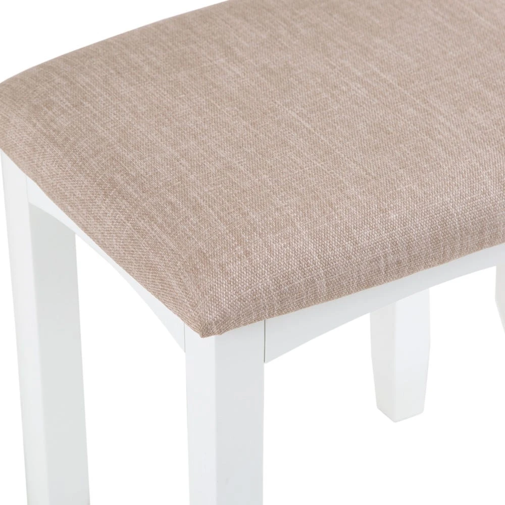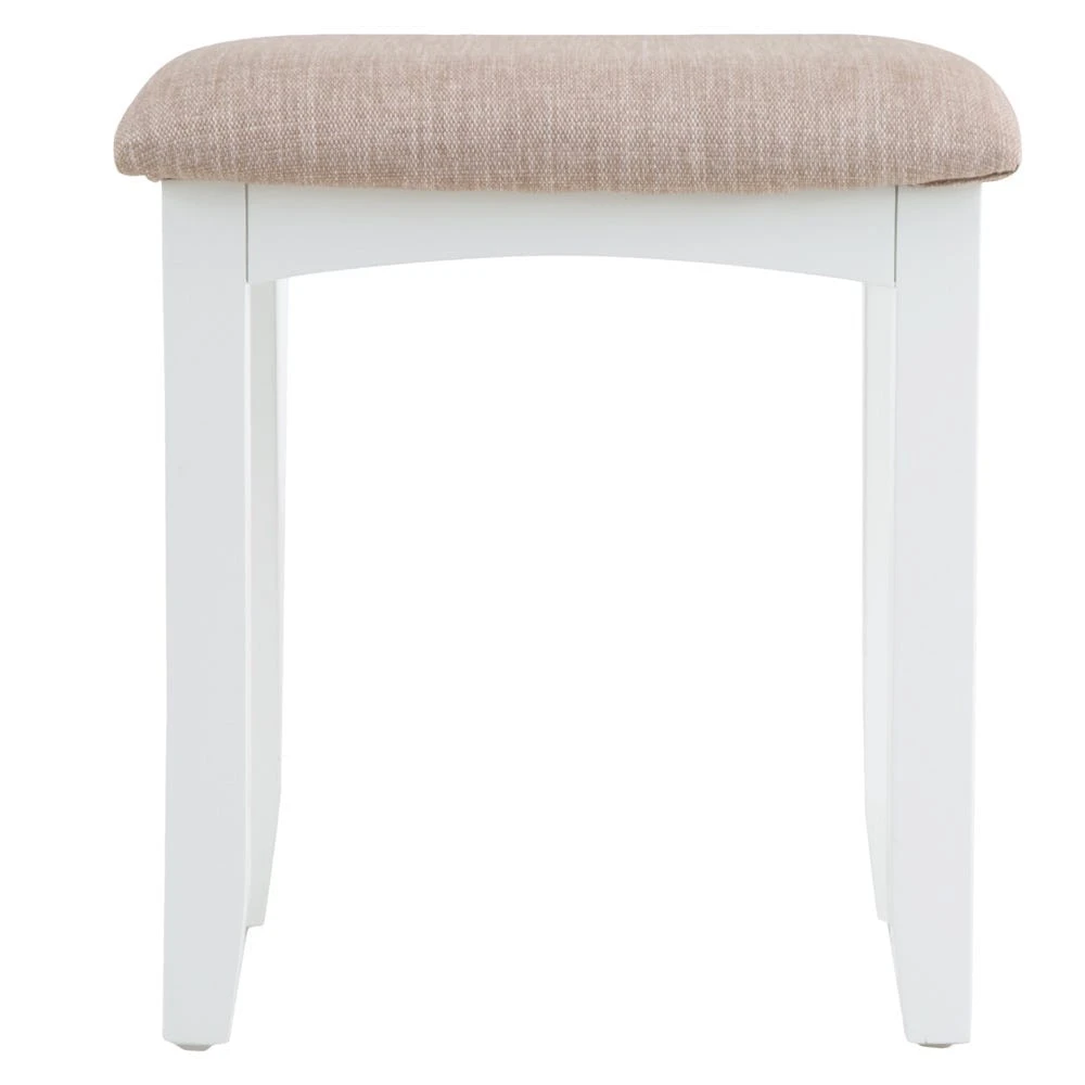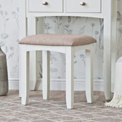 Our Gloucester white painted dressing stool perches prettily alongside our matching dressing table to let you get ready in luxury. The slightly off-white finish brightens up bedrooms in any colour scheme, and the soft padded seat is upholstered in complementary beige.