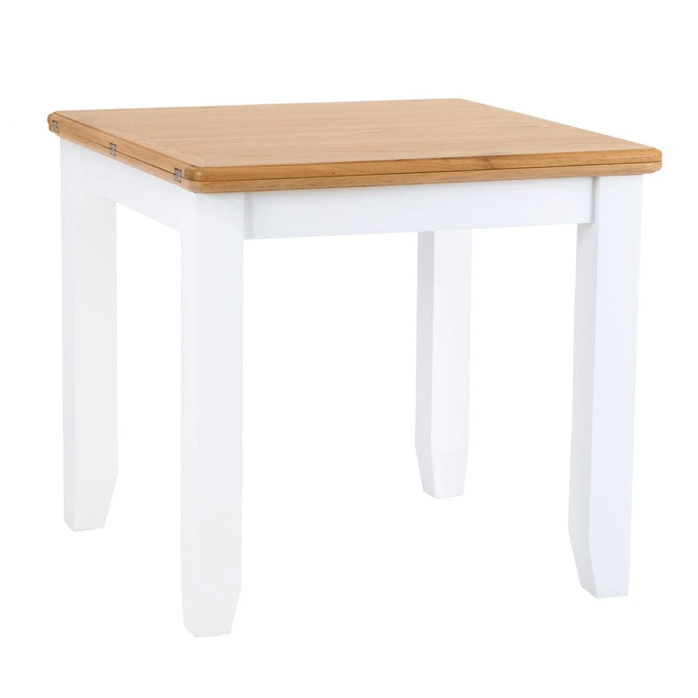 Our party-perfect Gloucester white painted flip-top dining table doubles in size to let you host extra guests in moments. In its original format it’s a cosy square table for four, and it flips out to accommodate eight when you’ve got multiple mouths to feed.