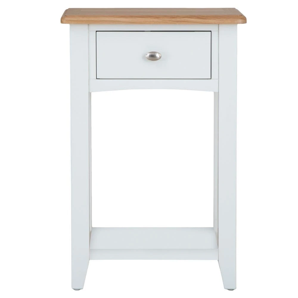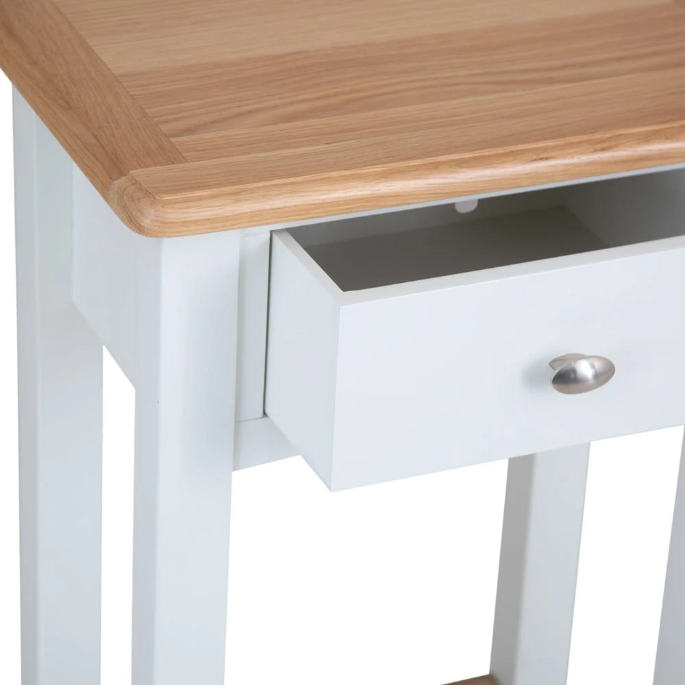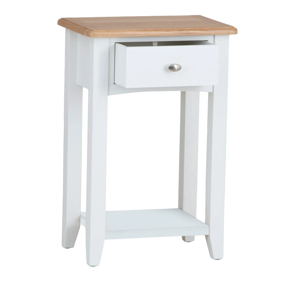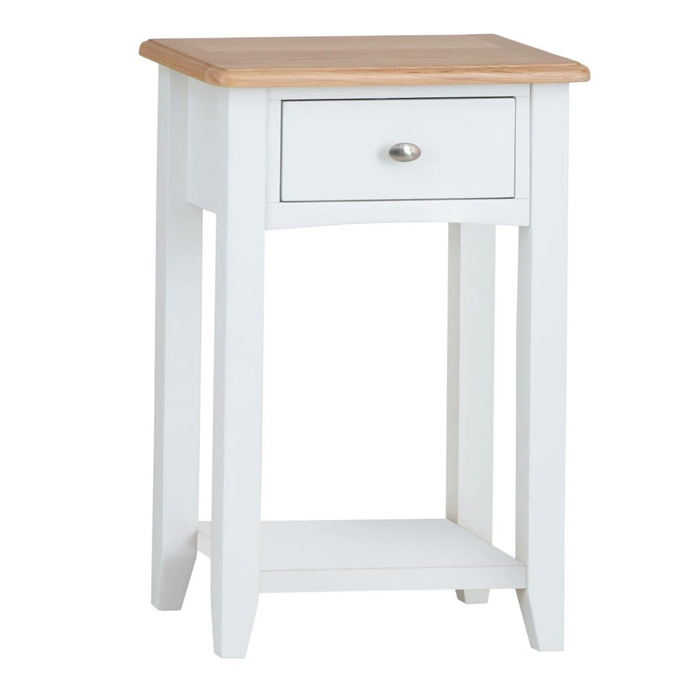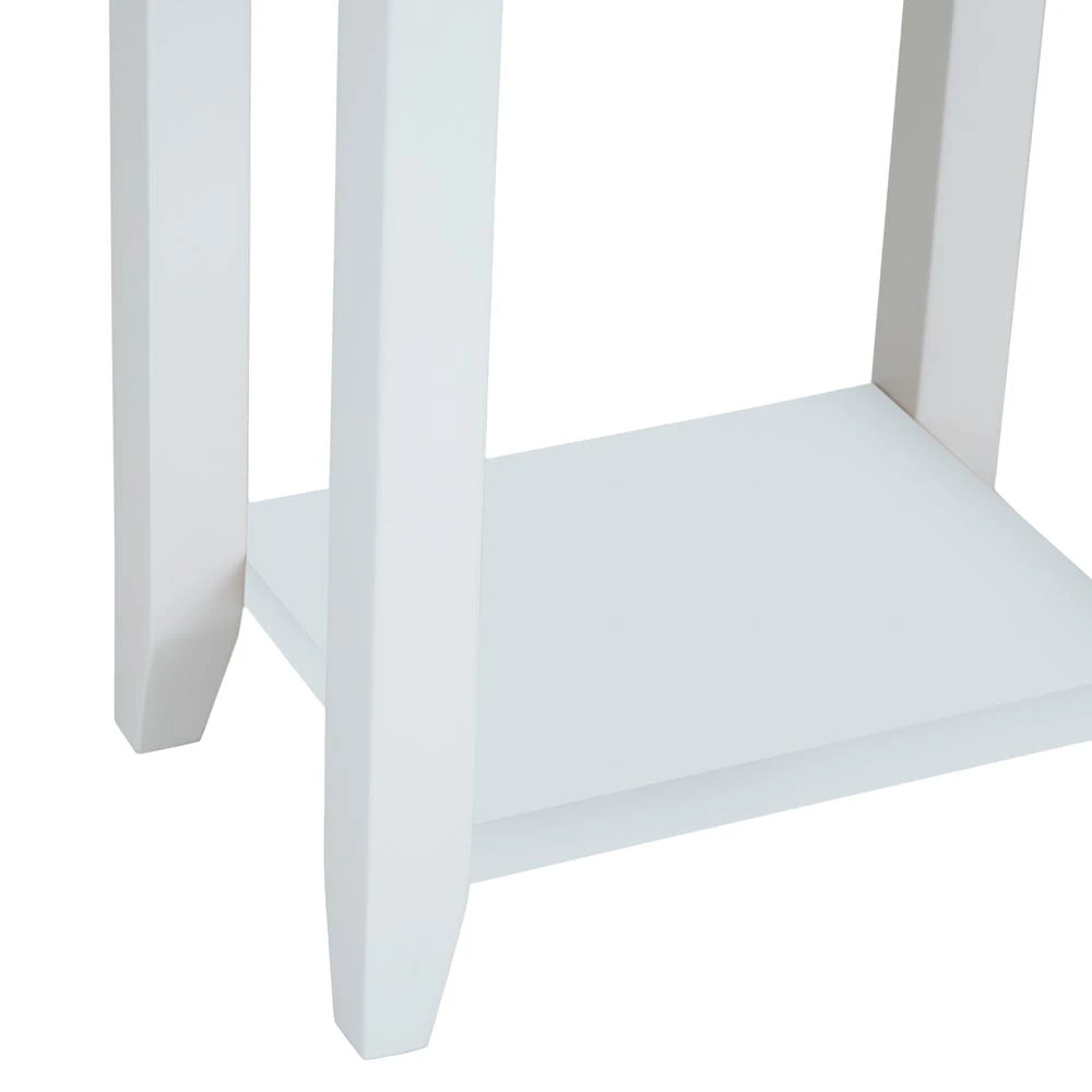 Ring the changes with our Gloucester white painted telephone table. Landline been consigned to history? This essential piece has plenty of space to show off a lamp, letter rack or vase of flowers to make your hallway look ultra-inviting. There’s also a handy lower shelf for a colourful ornament – or for stowing your slippers before you leave the house.