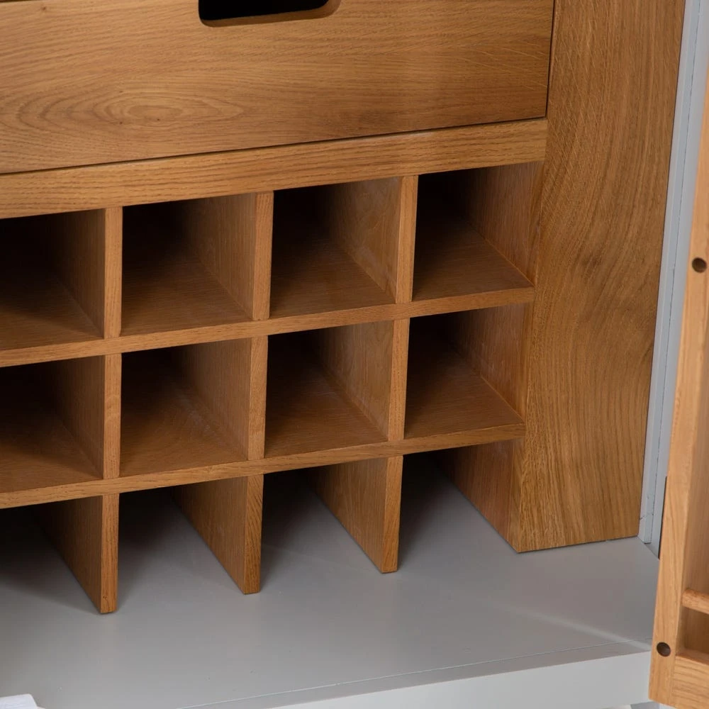 There’s plenty of room for all your culinary essentials, with a 12-bottle wine rack at the bottom for those special-occasion reds and whites. The door compartments are ideal for smaller jars and bottles, and you can keep spare glasses or plates in the cupboard at the top.