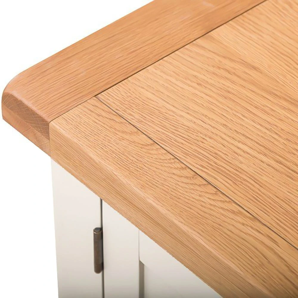 This unit delivers on the style front too, with its luxury ivory colour complementing our signature oak top. Chrome doorknobs and exposed hinges add a timeless touch.