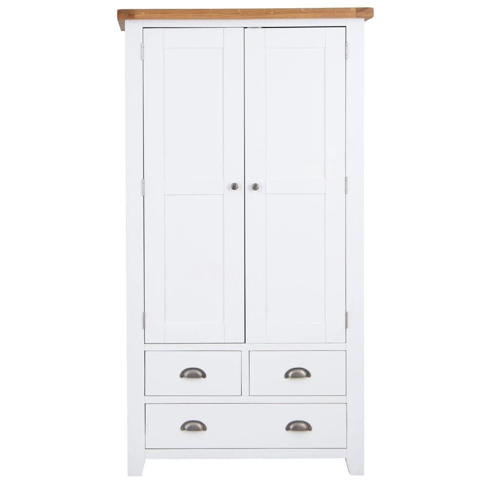 This Hampshire white painted oak large larder unit offers a feast of storage space while breathing new life into your kitchen. The double doors each have four built-in compartments of varying heights, and the main shelves can be adjusted or removed according to the contents of your weekly shop. The integrated wine rack has space for up to seven bottles and the three spacious drawers feature eye-catching chrome cup handles.