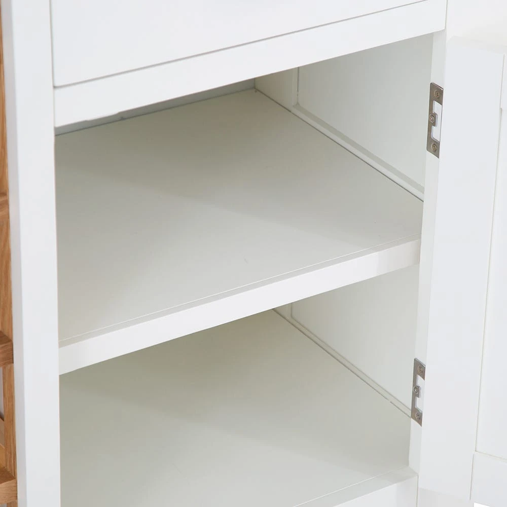Our lively Hampshire White pairs perfectly with the natural oak rack and top, for a colourway that suits both traditional and modern spaces. This sideboard comes pre-assembled, and can double up as a display piece for your favourite candles, vases and photos.