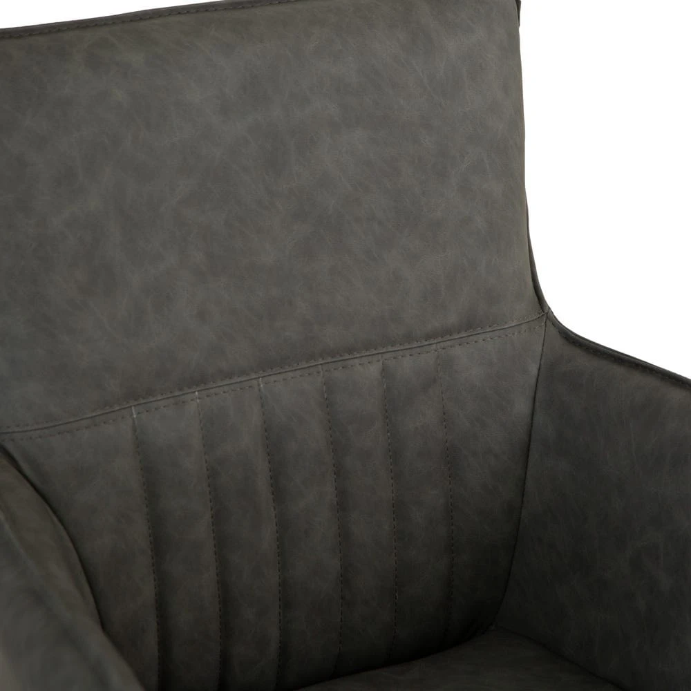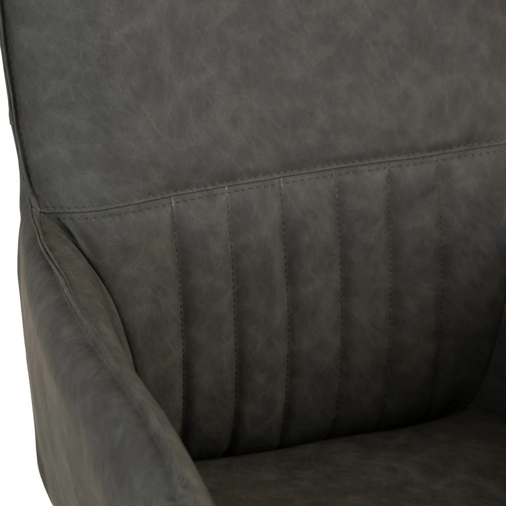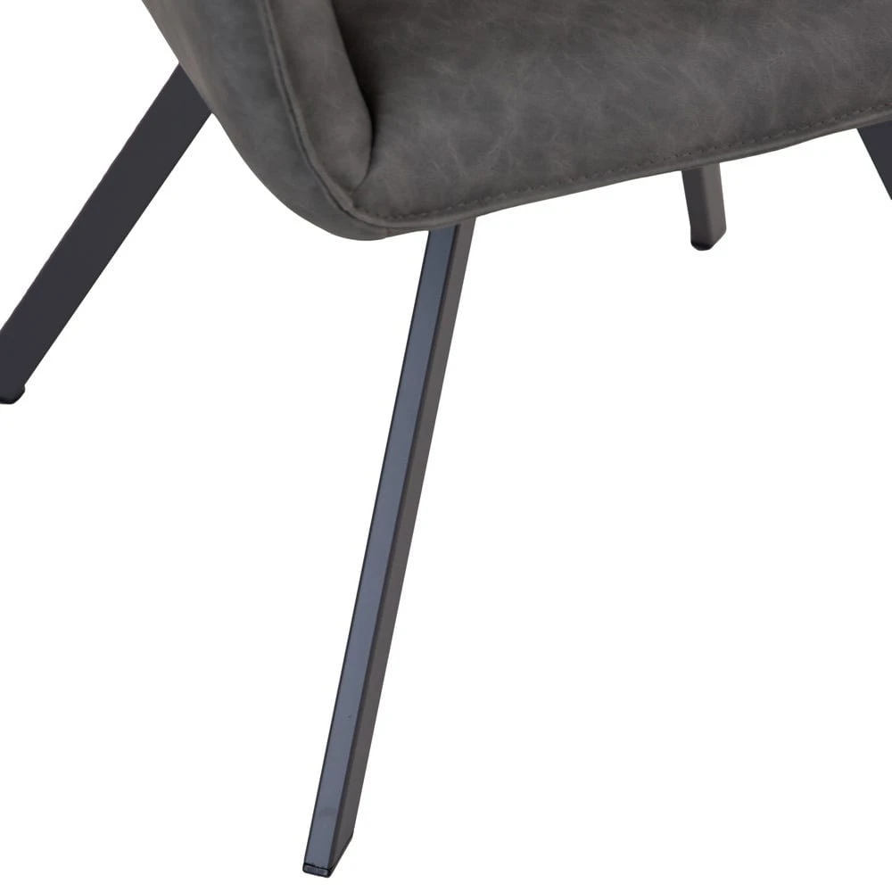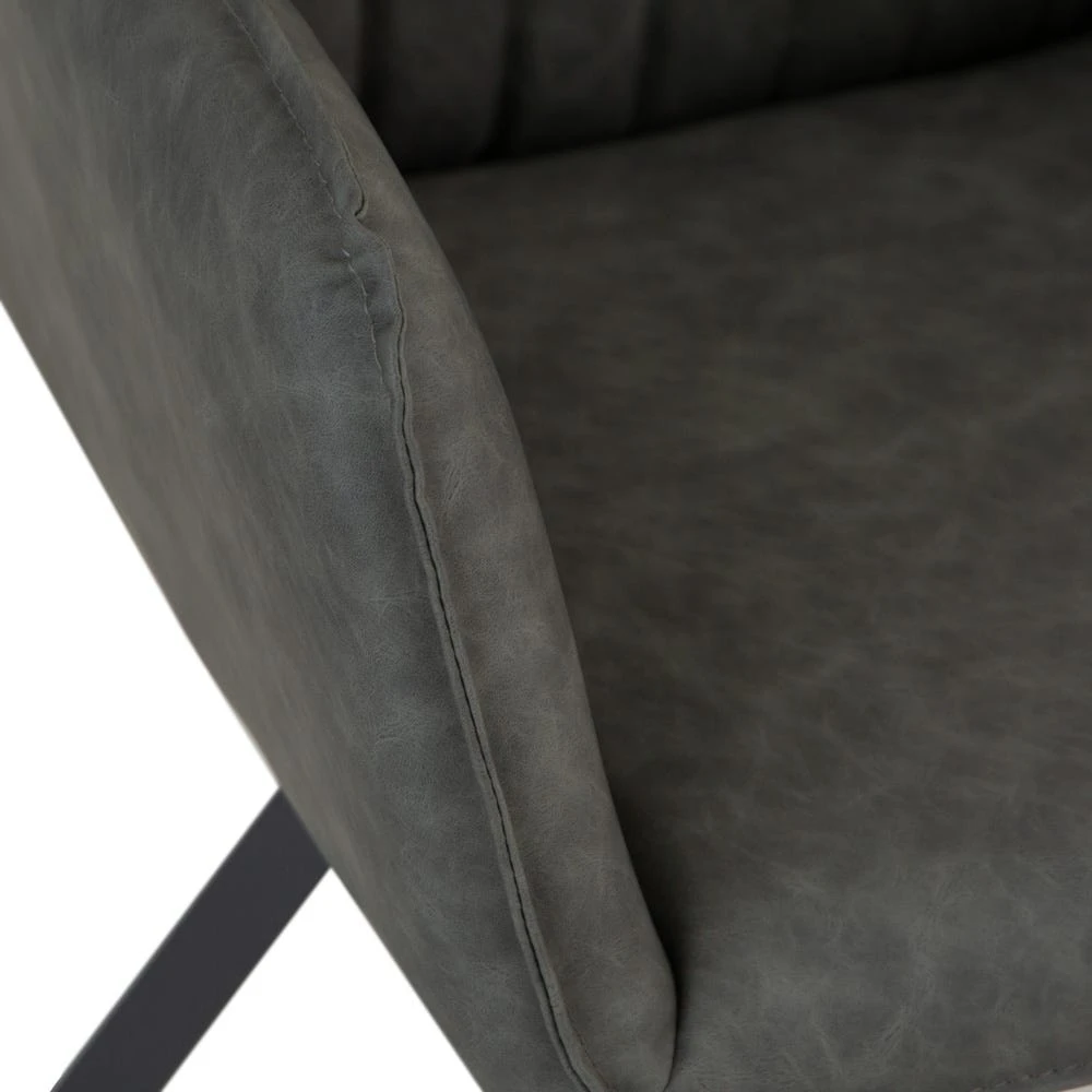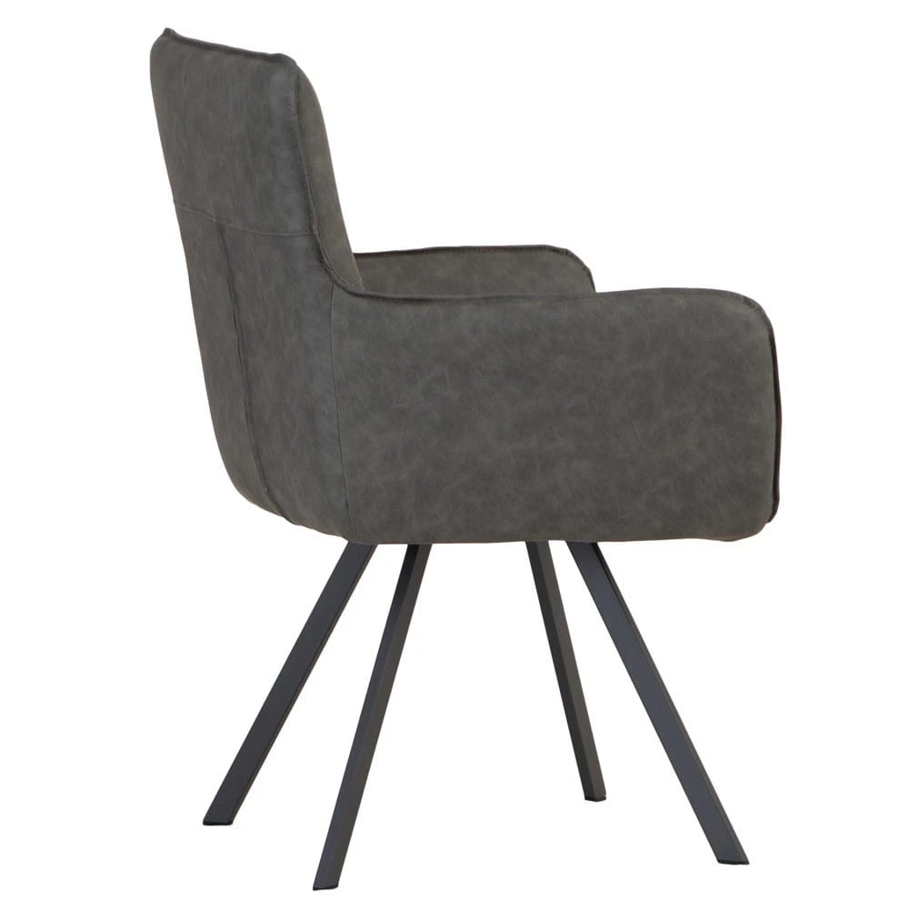 Our Industrial grey carver chair ticks all your seating boxes. Its smooth grey upholstery combines practicality with style, and the lower panelling on the back adds both comfort and visual. The metal legs fan out from the base for a modern geometric effect that offsets the traditional shape of the seat, while the discreet stitching adds an artisan finish.