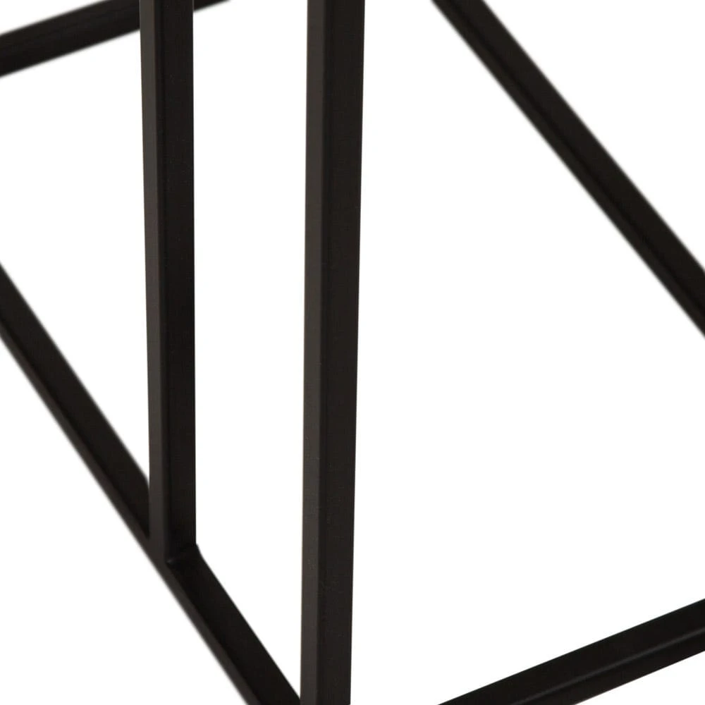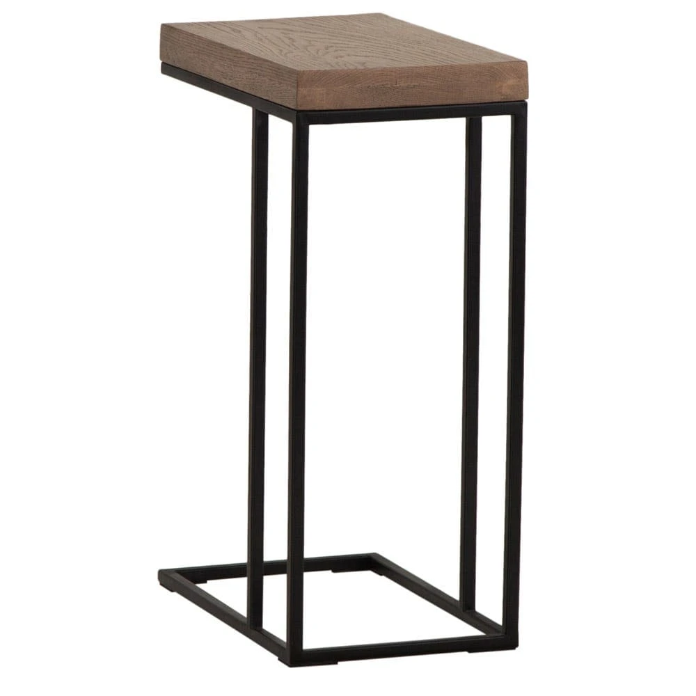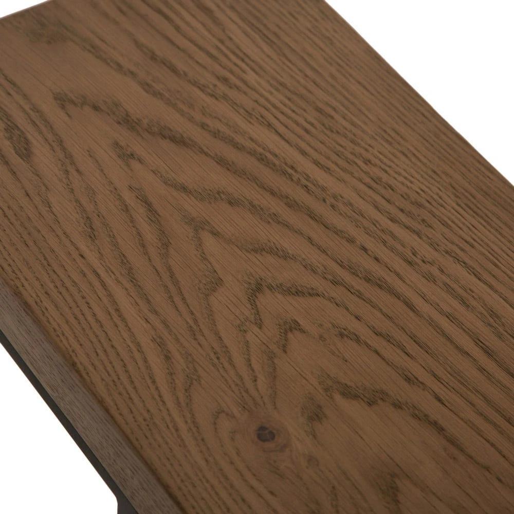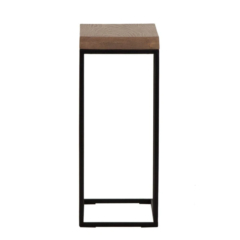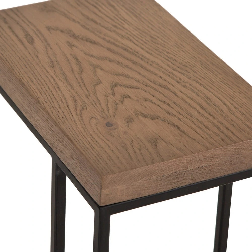 Our distinctive Industrial oak telephone table is the ideal addition to your hallway or living room. The slender metal black legs contrast with the chunky oak top for a fine balance of modern and traditional styles. The top is inlaid with a basket-weave pattern, and the asymmetrical legs cast a sophisticated silhouette against any backdrop.