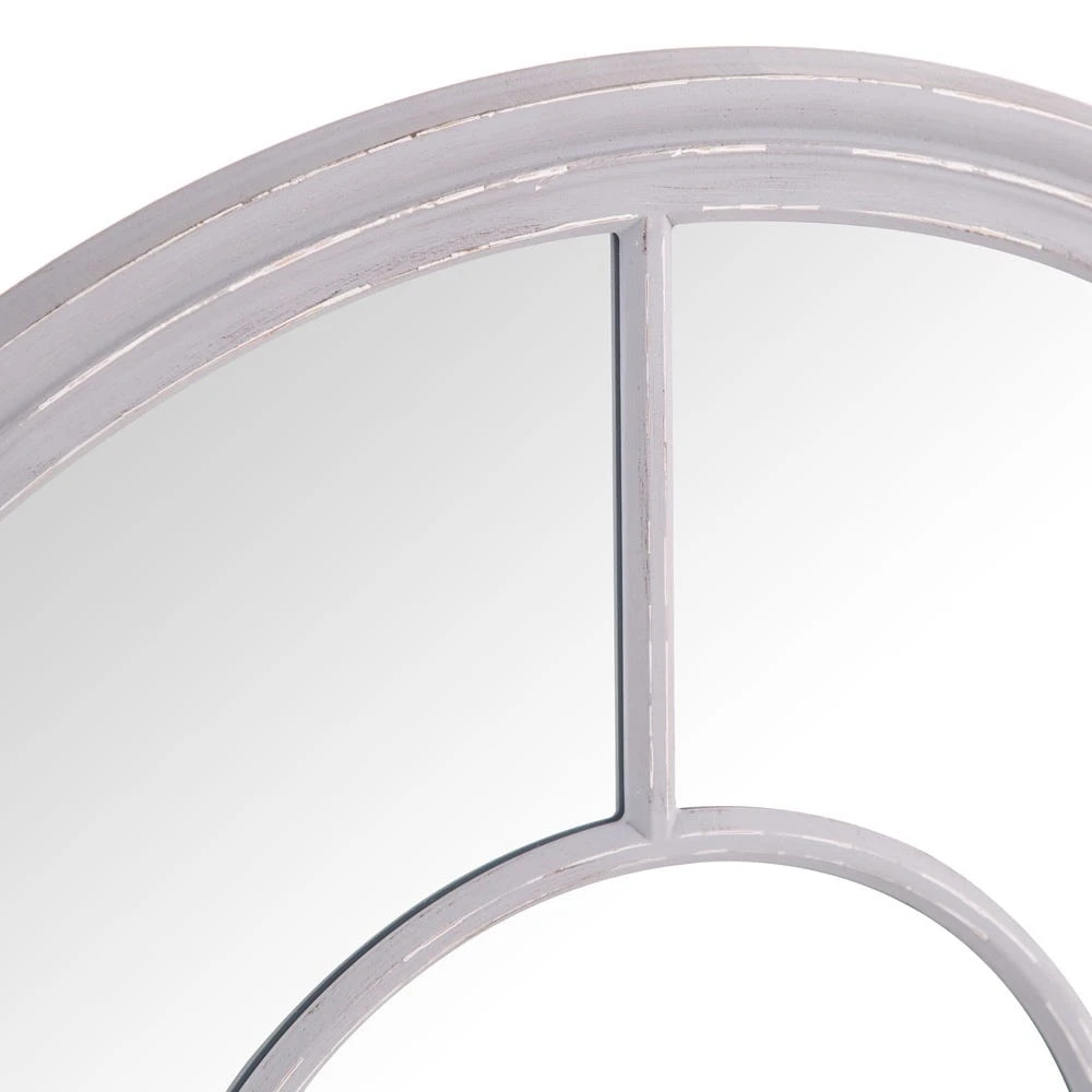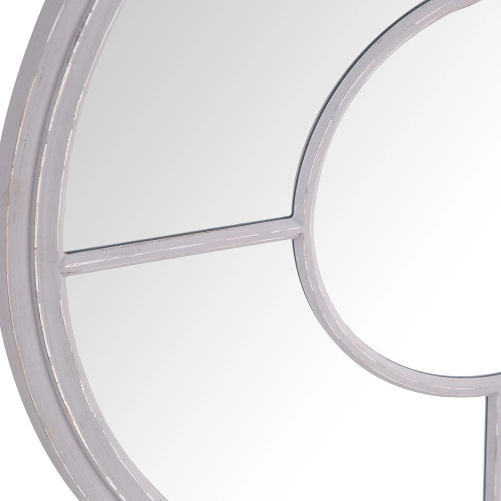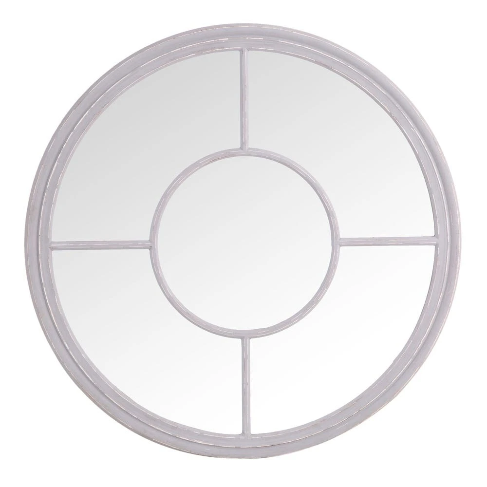 Banish bare walls with this Marseille distressed grey round window mirror. This sizeable circular mirror delivers showstopping impact, whether you display it in your hallway or your living room. Use it to add light and space to any area of your home – and for that all-important glance at your reflection before you leave the house.