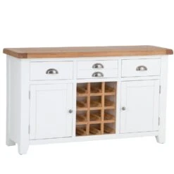 Chester White Painted Oak 2 Door Large Sideboard With Wine Rack