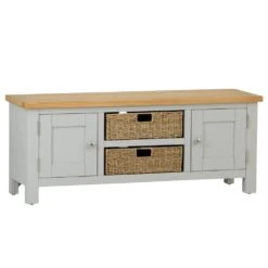Salisbury Grey Painted Oak Large TV Unit With Wicker Baskets