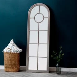 Our Rouen narrow grey arched window hallway mirror (60 x 180cm) makes a sophisticated statement in any space in your home. Its elegant slender arch and window-style framing evoke all the grandeur of a country house, and the distressed effect on the paintwork adds an antique feel.