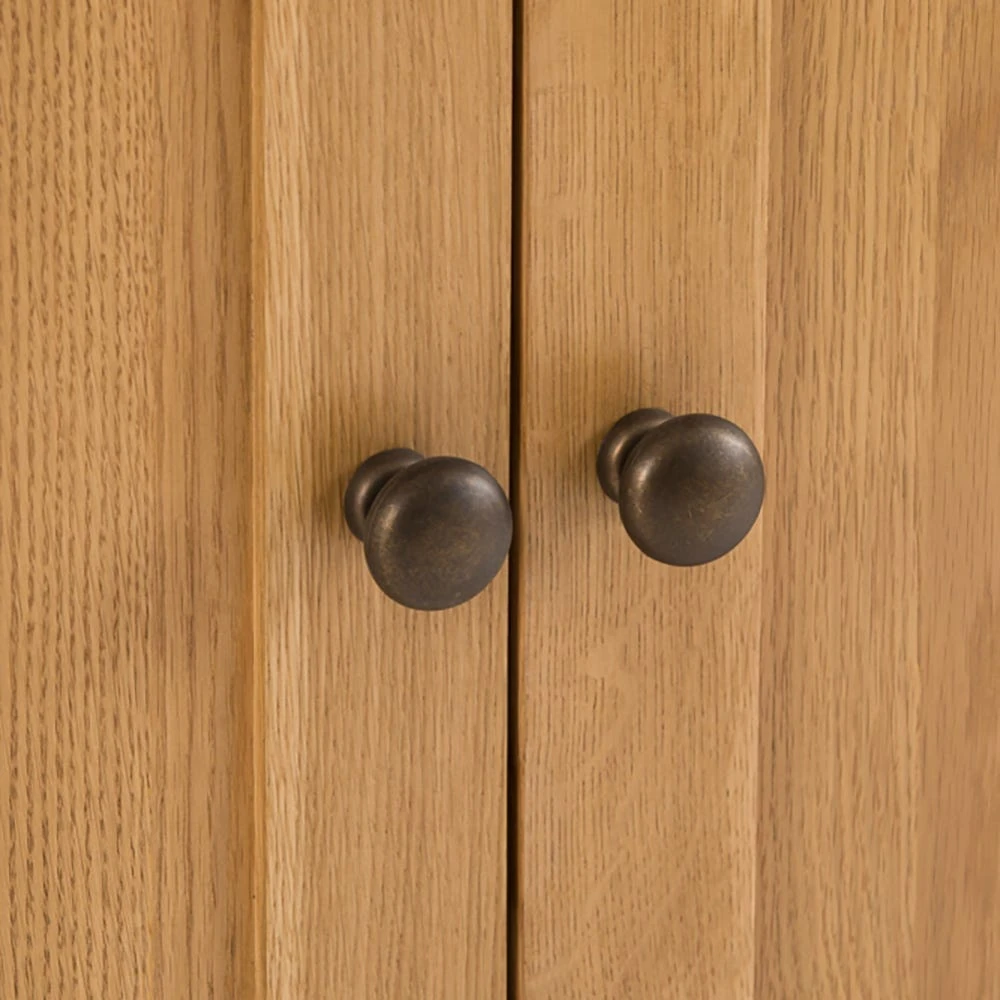 Our homely oak composition conjures up a farmhouse feel, and the brass-tinted handles add a traditional touch.