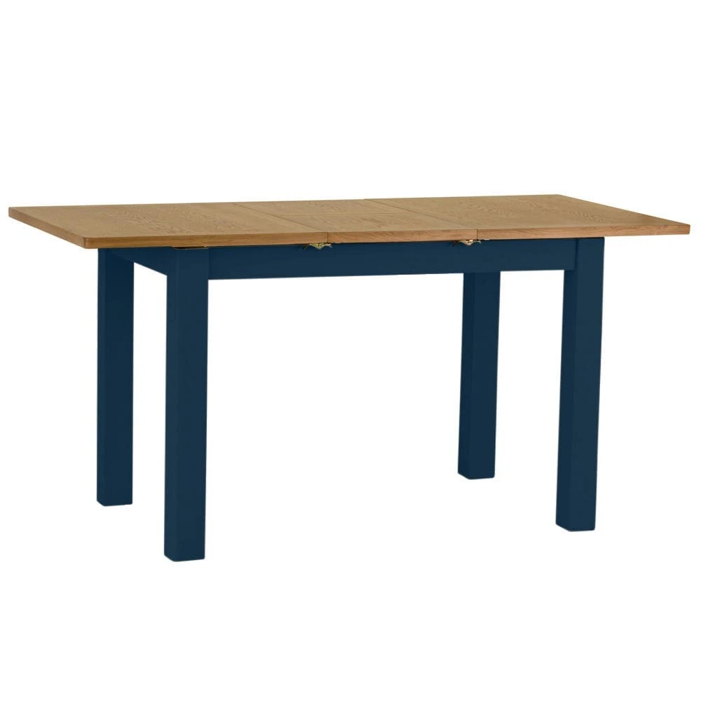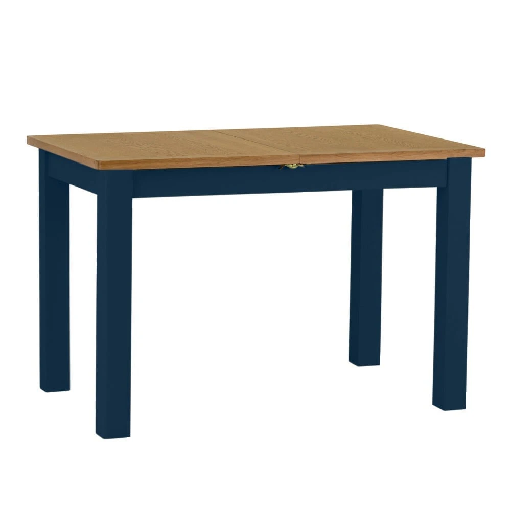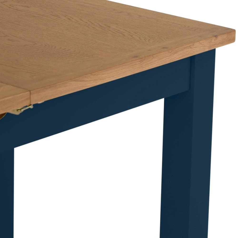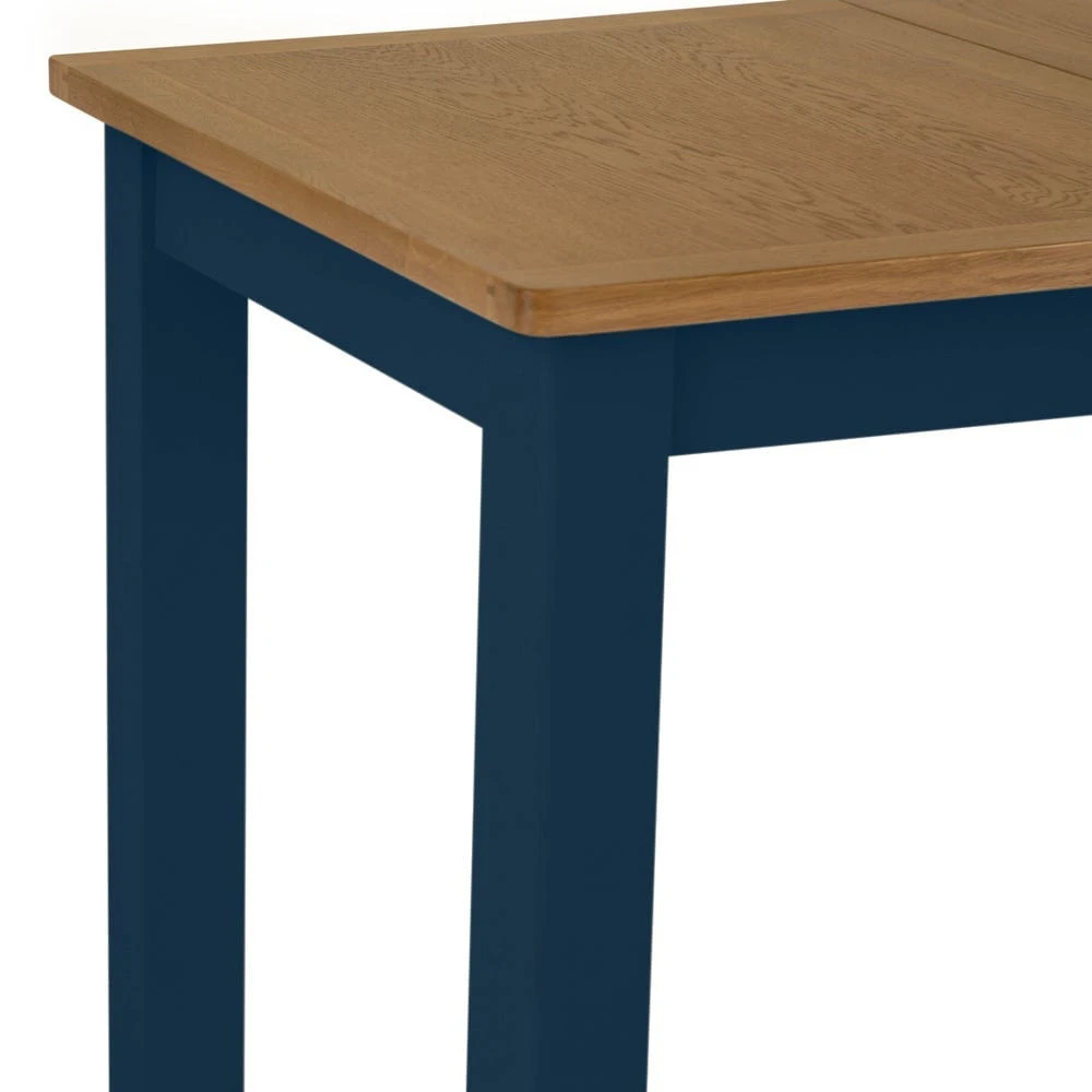 The rich blue finish contrasts elegantly with the golden oak top to make this piece a distinctive addition to any style of space. Use this table with a set of our Rutland blue dining chairs for a coordinated arrangement that will quickly become the hub of your home.