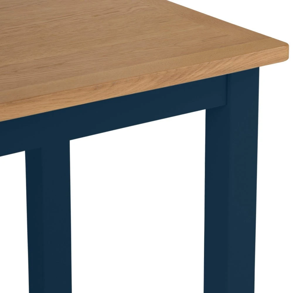Our super-stylish navy hue is a modern classic that fits seamlessly into any style of home. It’s complemented by the traditional oak top, which has a reassuringly rustic appeal and a smooth finish that’s easy to keep clean. The chunky legs banish mealtime wobbles and feature softly rounded edges for both comfort and style. This table works perfectly teamed with matching dining chairs from the Rutland blue collection.
