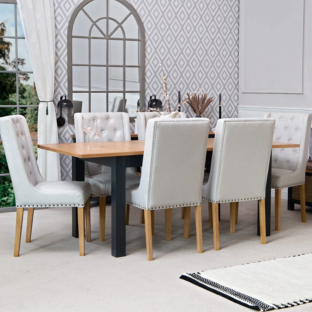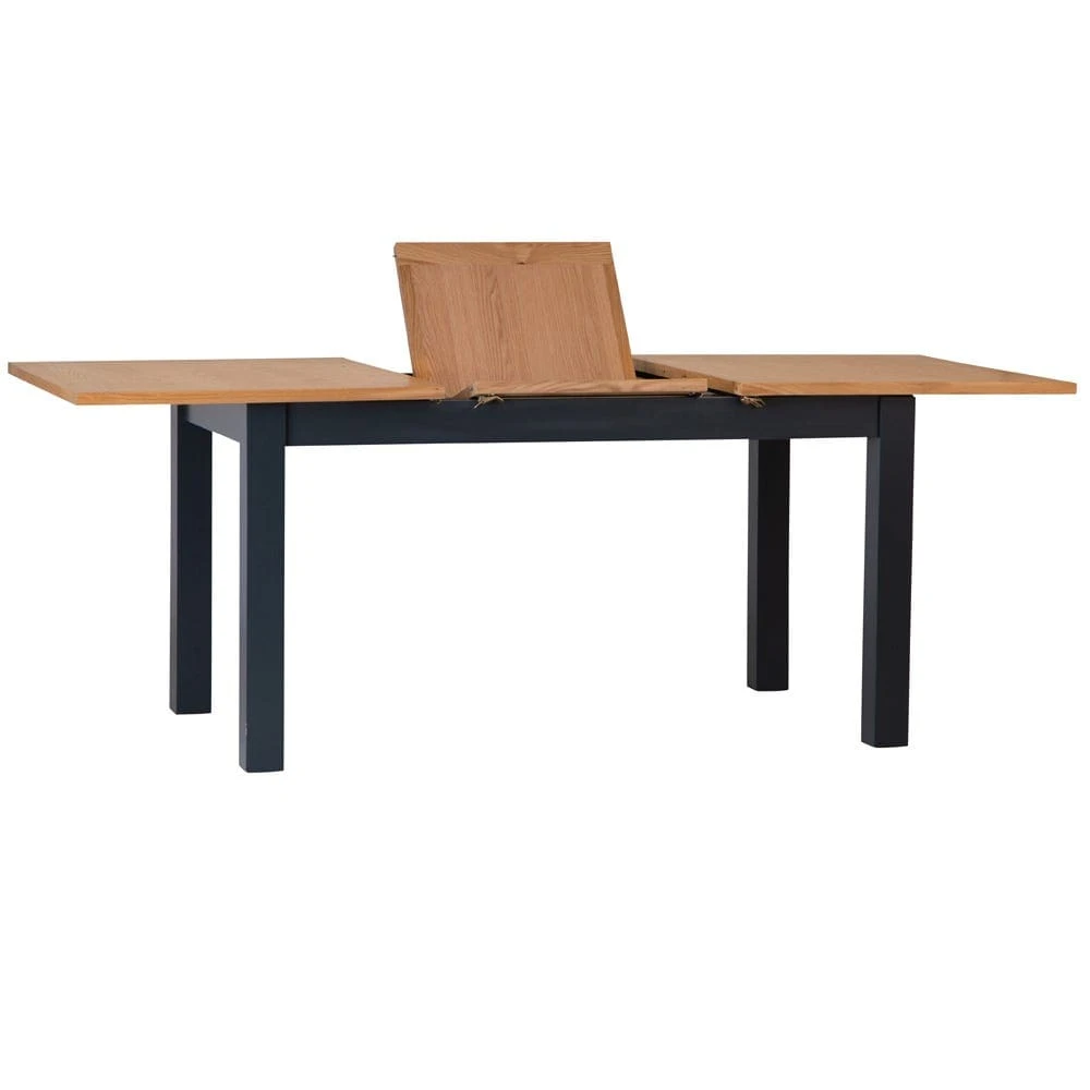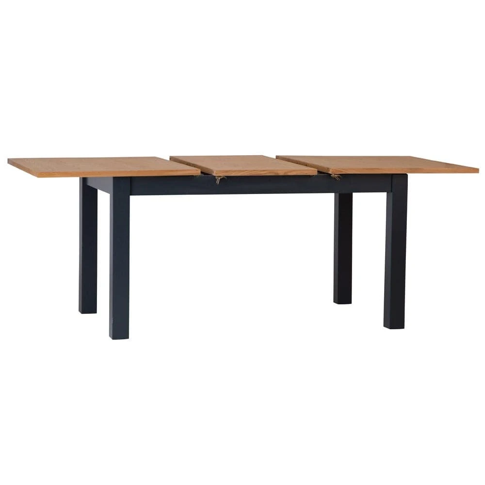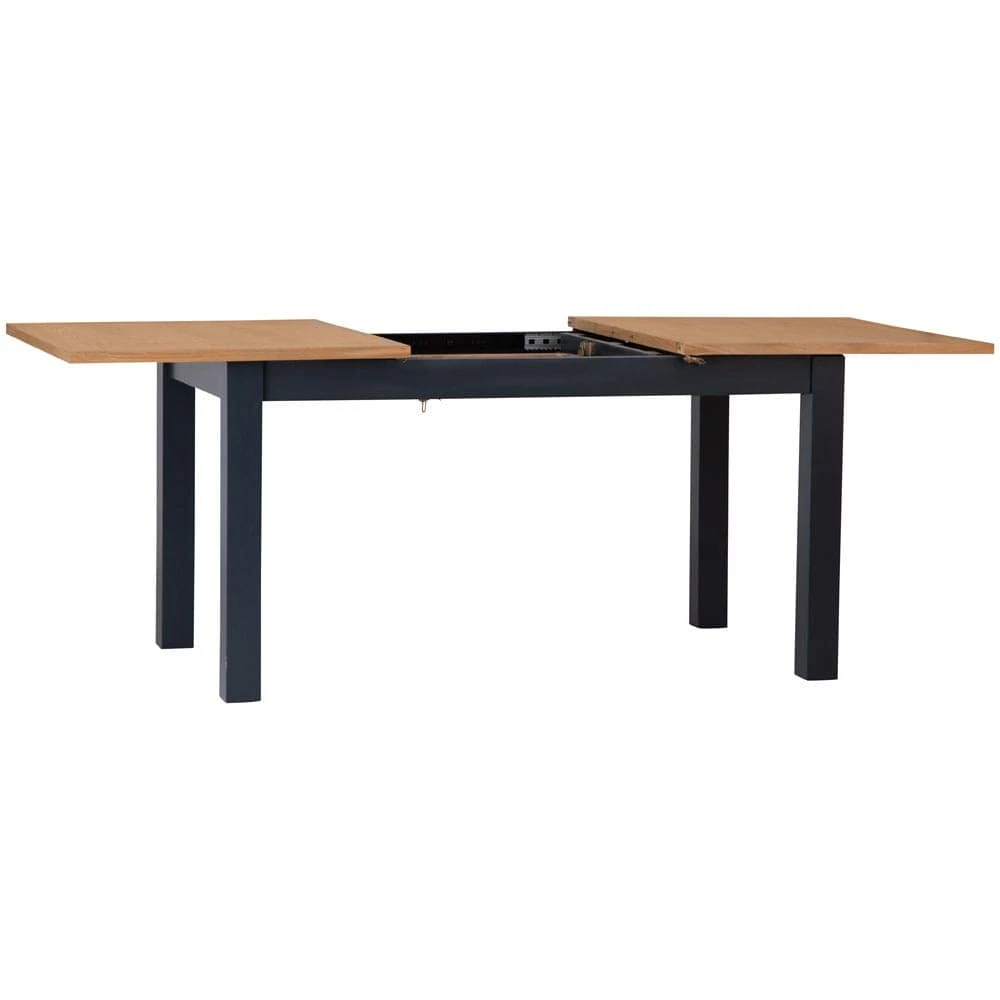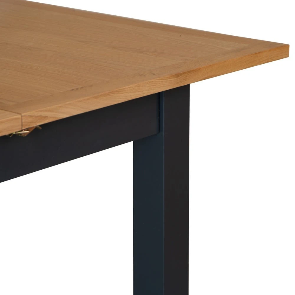 The natural oak top is offset by our modern dark blue hue on the legs, for a combination that enhances any dining set-up. Dress this table with simple linen and plain white crockery to accentuate its rustic appeal, or choose bright colours and bold patterns for a striking contrast.