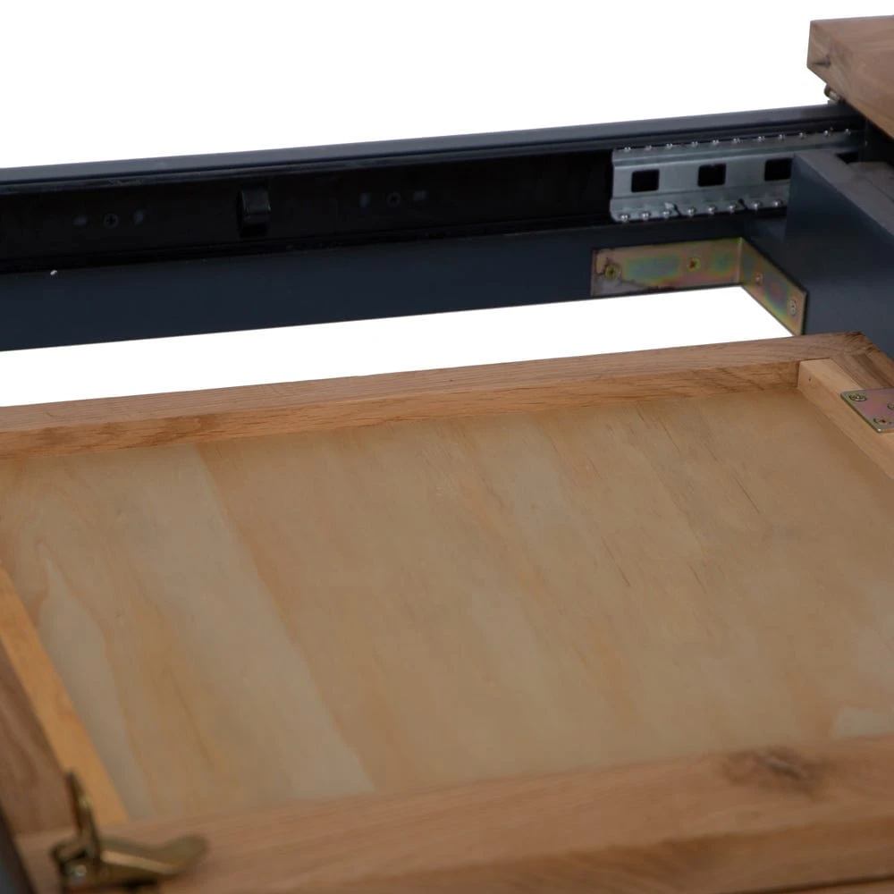 Settle down with the Sunday papers or plan a showstopping three-course meal with our Salisbury blue painted oak 1.5m butterfly extending dining table. Its length increases to a generous 2m with the help of a hidden central panel, so you can easily cater for a crowd (or up to 10 people, anyway).