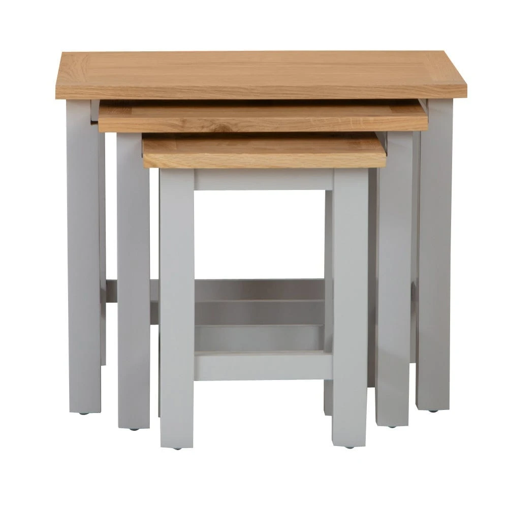 Our covetable Salisbury grey painted oak nest of 3 tables lets you triple your surface space whenever you need. Each piece can be used as an occasional table for drinks and nibbles when friends pay a visit, or as a permanent display stand anywhere in your home. They nest together to sit neatly against a wall whenever you need to reclaim some floorspace.