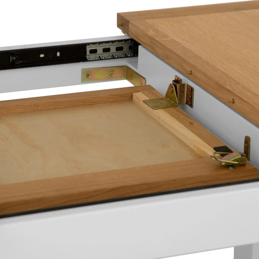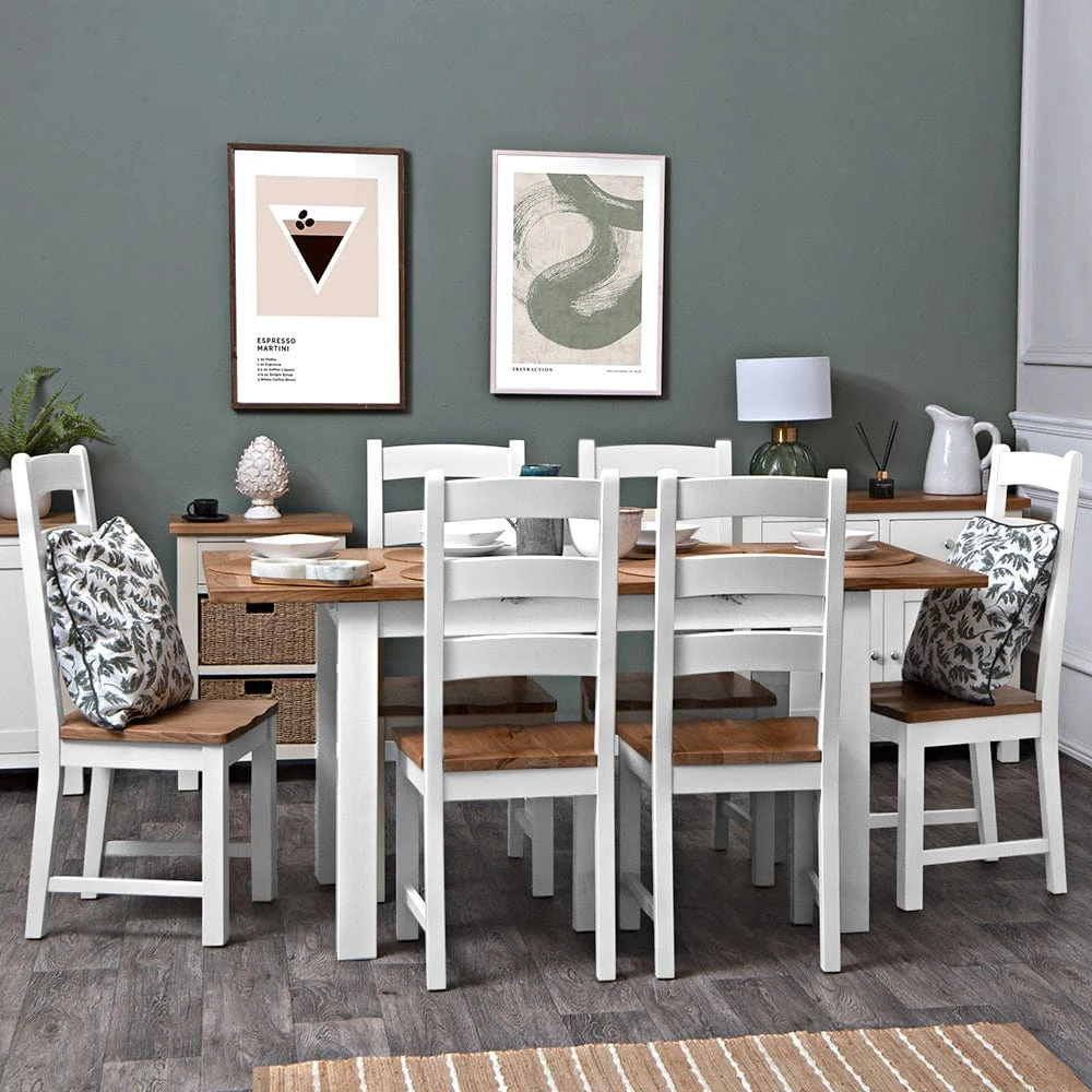 The timeless White hue effortlessly brightens up kitchens and dining rooms, and our honey-coloured oak top has a farmhouse-style feel. This classic colourway suits both simple wooden dining chairs and more elaborate upholstered ones.