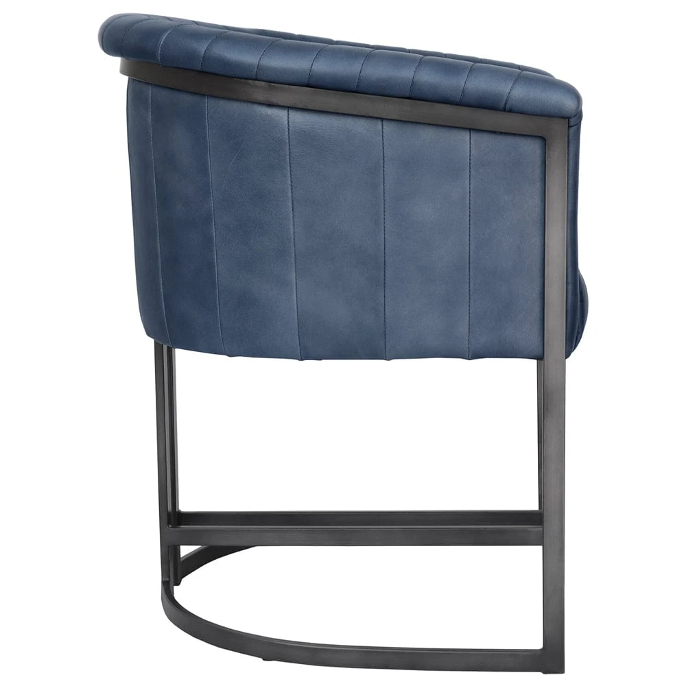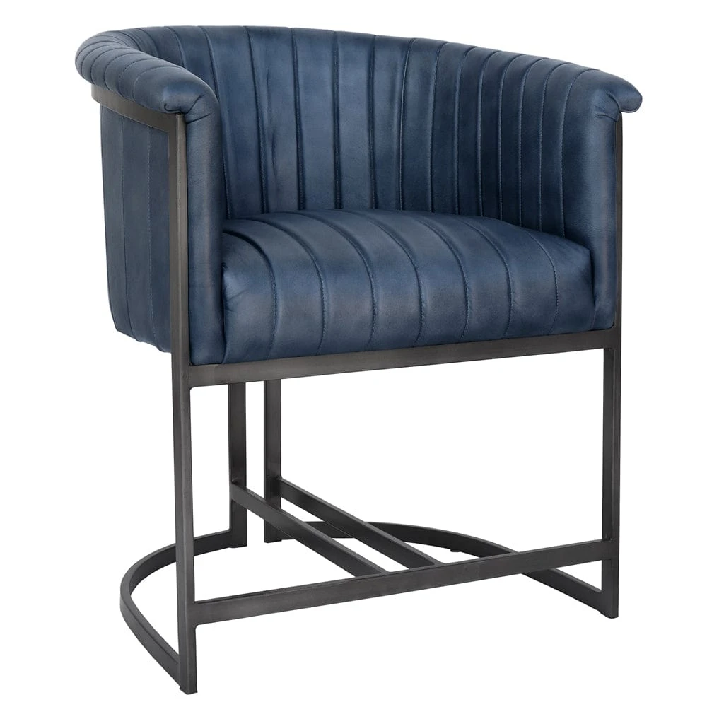 The Shoreditch Industrial Blue Leather Dining Chair features a sleek metal frame and 100% genuine leather upholstery in a deep blue hue. The chair’s modern design is sure to catch the eye and will add a touch of sophistication to any dining area.