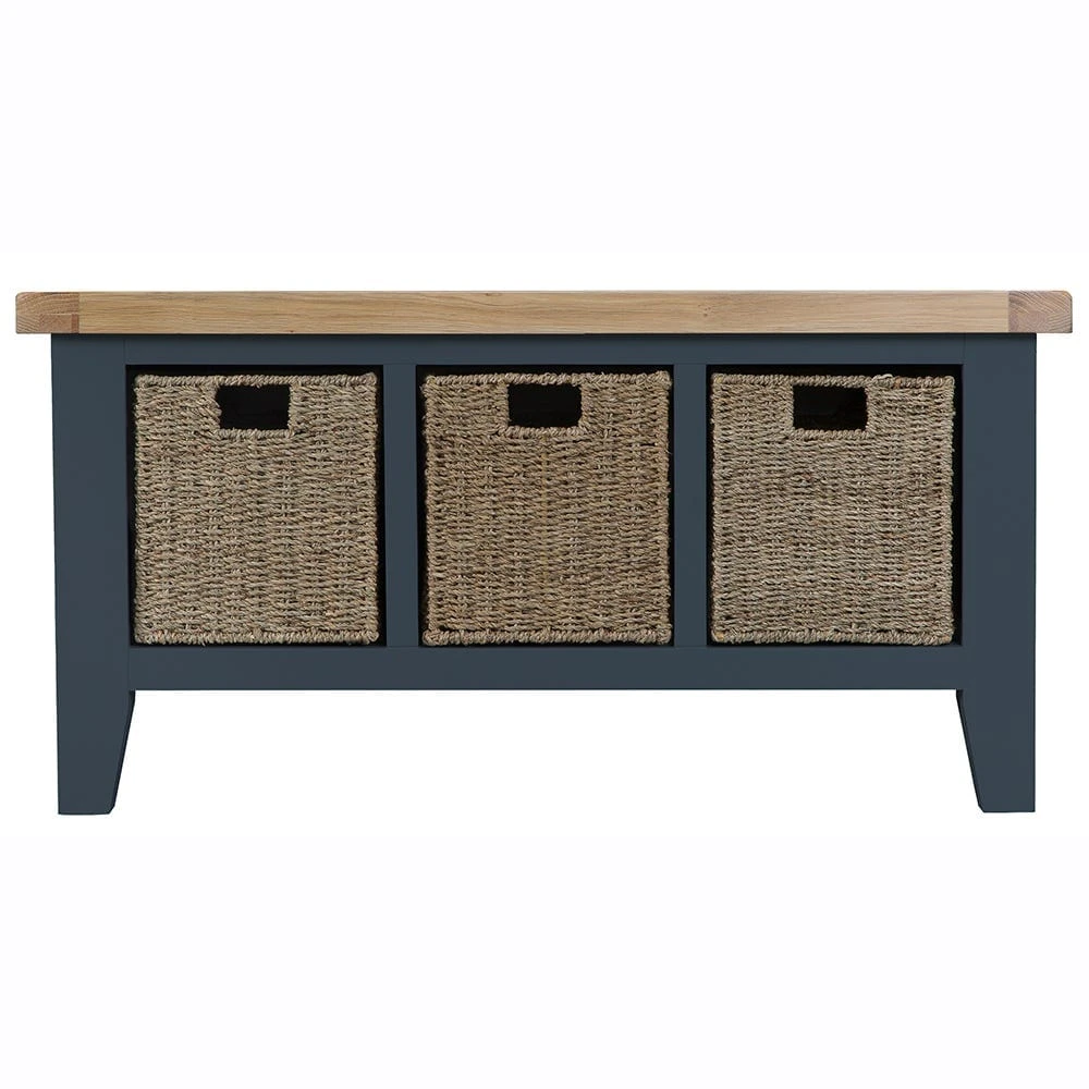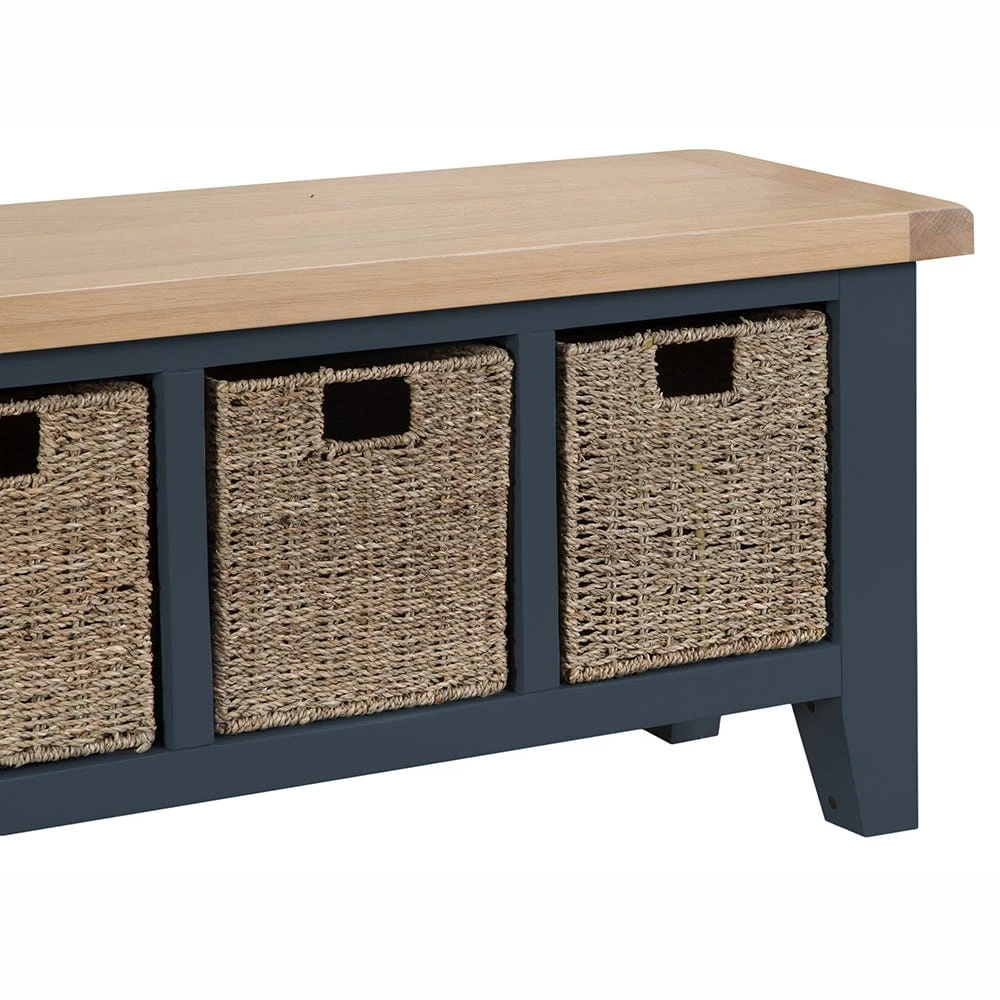 Be the first to review “Suffolk Midnight Grey Painted Oak Large Hall Bench With Wicker Baskets” Cancel reply