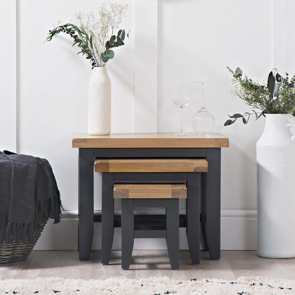 Be the first to review “Suffolk Midnight Grey Painted Oak Nest Of 3 Tables” Cancel reply