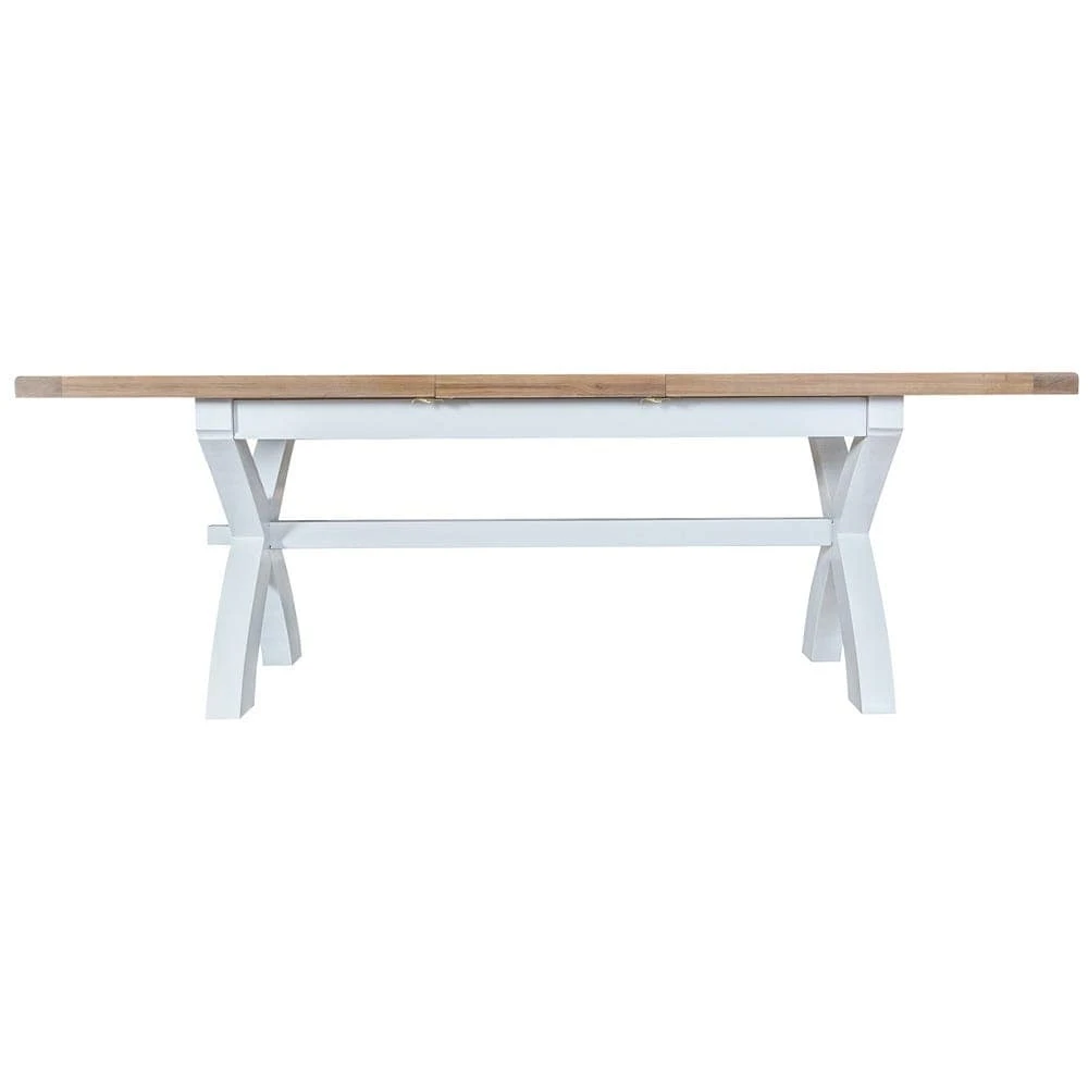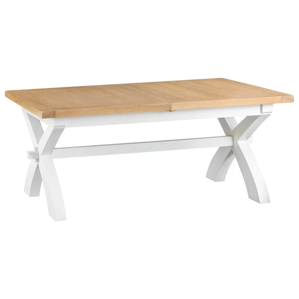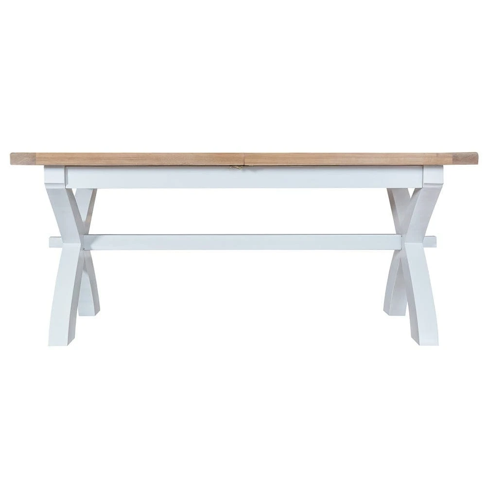 Looking for a table that’s both unique and practical? Well, the Suffolk White Painted Oak 1.8m Cross Extending Table may just be perfect for you. Featuring a truly unique style that contains timeless crossed-legs and a contemporary white painted solid pine frame, as well as elements of traditional furniture styles with a stunning chunky oak and real oak veneer top, which is normally 180cm but can extend to a sizeable 230cm, making it perfect for even the largest of families. Feel like you need something a bit bigger? Be sure to check out the 2.5m Butterfly Extending Table in this range. Or perhaps it’s something smaller you’re after? In which case the 1.2m and 1.6m tables may be ideal for you. This item is also available in Grey from Chiltern Oak Furniture in our Suffolk Grey Painted Oak Collection.