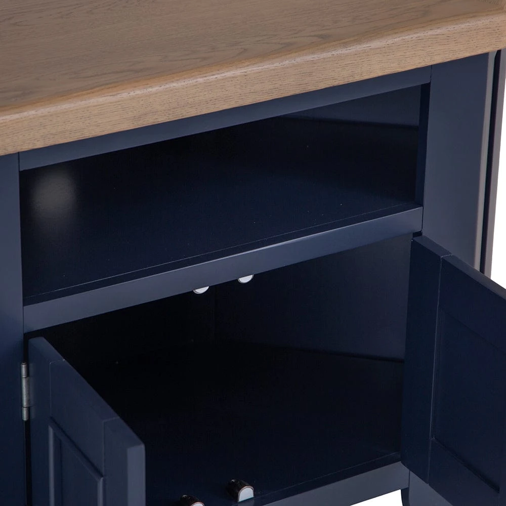 Indulge yourself in a little bit of luxury. Our Wessex Smoked Oak Blue Painted Collection exudes class and style with its chunky oak frames, smooth rounded corners and unique appearance. The smoked colour of the wood is unlike any of our other collections, and this uniqueness transcends itself across the range with a host of statement pieces you won’t find elsewhere. Flagship items in this gorgeous oak Bedroom, Living and Dining furniture collection include a super-size Larder Unit, a cleverly designed Extra Large Tall Drinks Cabinet and an eye-catching Sideboard Wine Rack amongst other traditional oak furniture items. The deep blue painted frames make this gorgeous collection an elegant addition to the home. This range is available in an unpainted oak finish, called Wessex Smoked Oak.