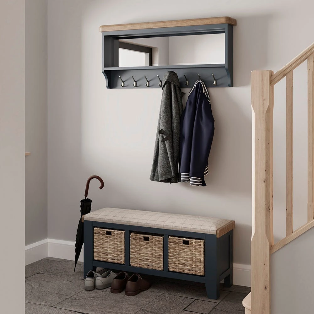 Be the first to review “Wessex Smoked Oak Blue Painted Hall Bench With Wicker Baskets” Cancel reply
