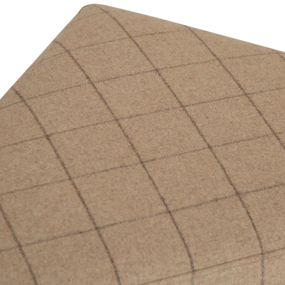 Its design encompasses elements of old-fashioned rustic furniture. The smoked wood colour has its natural grain running through it and fluid rounded corners. It comes with an upholstered seat made from 100% wool. There’s also a wicker basket that fits snugly into its own shelf and can be used to hold extra pillows or blankets.