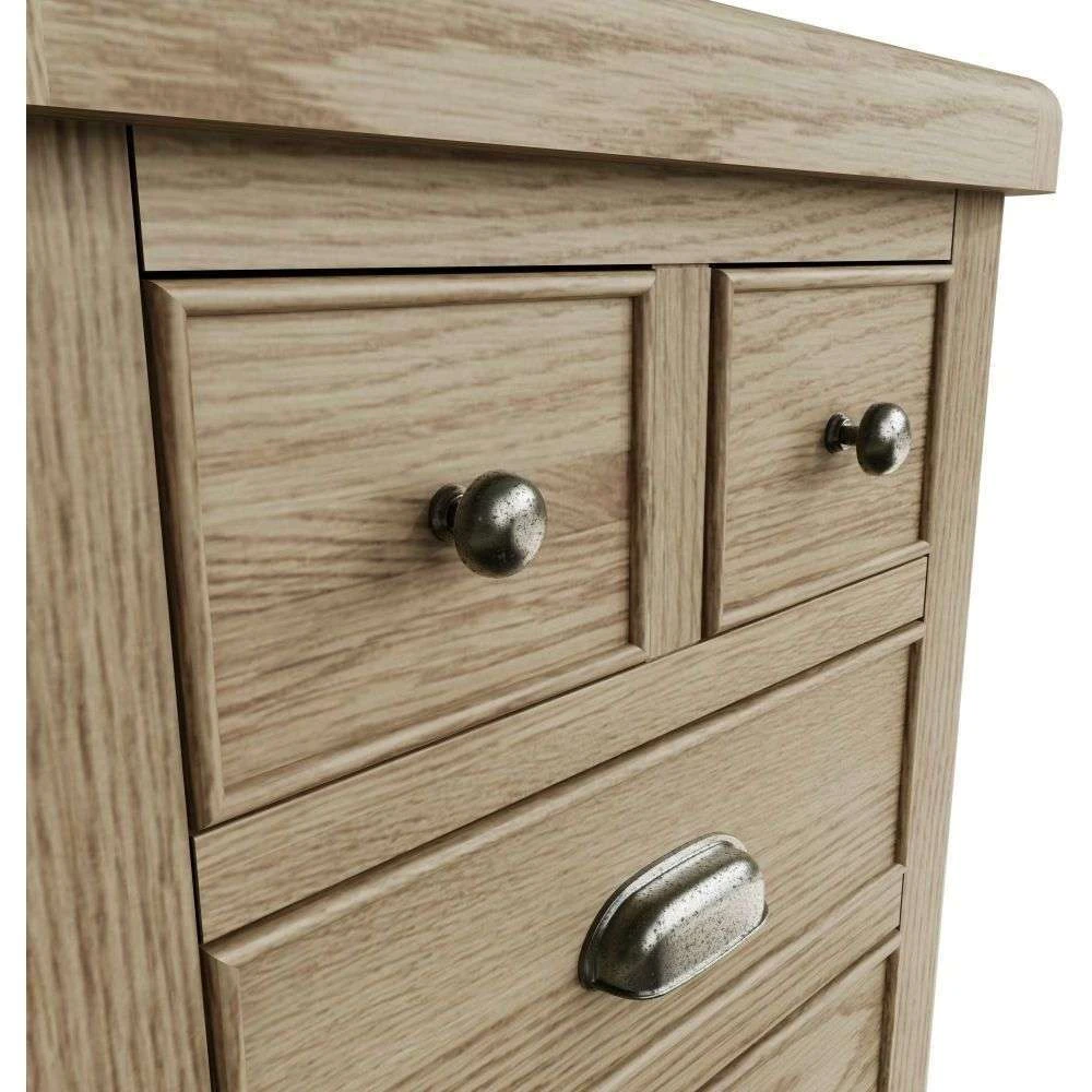Indulge yourself in a little bit of luxury. Our Wessex Smoked Oak Collection exudes class and style with its chunky oak frames, smooth rounded corners and unique appearance. The smoked colour of the wood is unlike any of our other collections, and this uniqueness transcends itself across the range with a host of statement pieces you won’t find elsewhere. Flagship items in this gorgeous oak Bedroom, Living and Dining furniture collection include a super-size Larder Unit, a cleverly designed Extra Large Tall Drinks Cabinet and an eye-catching Sideboard Wine Rack amongst other traditional oak furniture items. Be one of the first to get your hands on this breath-taking collection from Chiltern Oak. This Collection is available in a blue painted finish, called Wessex Smoked Oak Blue Painted.