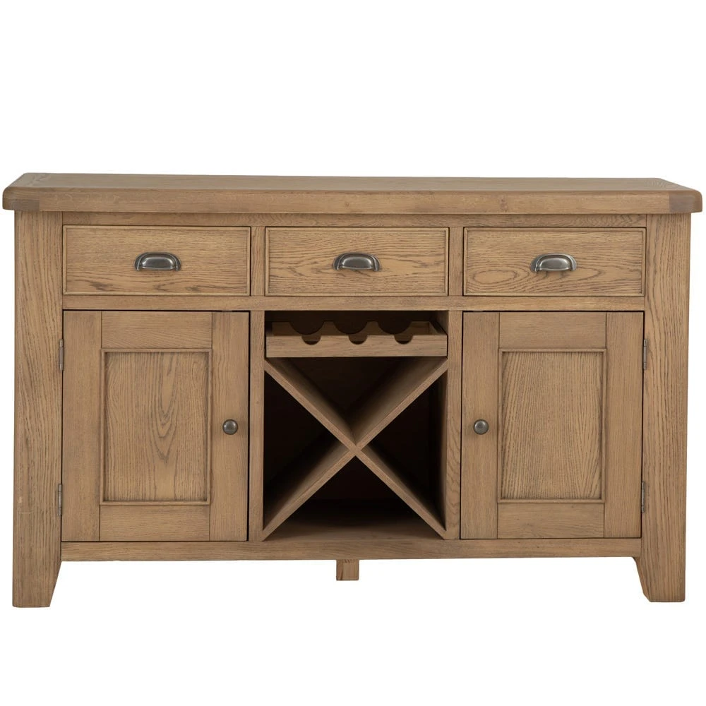 Store your reds, whites and rosés in style with our Wessex smoked oak large sideboard wine rack. This two-in-one wine repository and sideboard combines easy-going down-time with practical storage facilities.